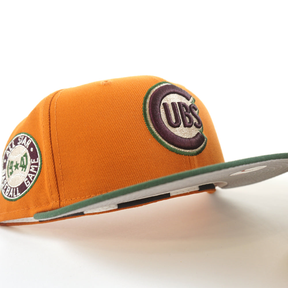 Chicago Cubs 1947 All Star Game 59Fifty New Era Fitted Hat in Orange Green and Gray Under Brim.
