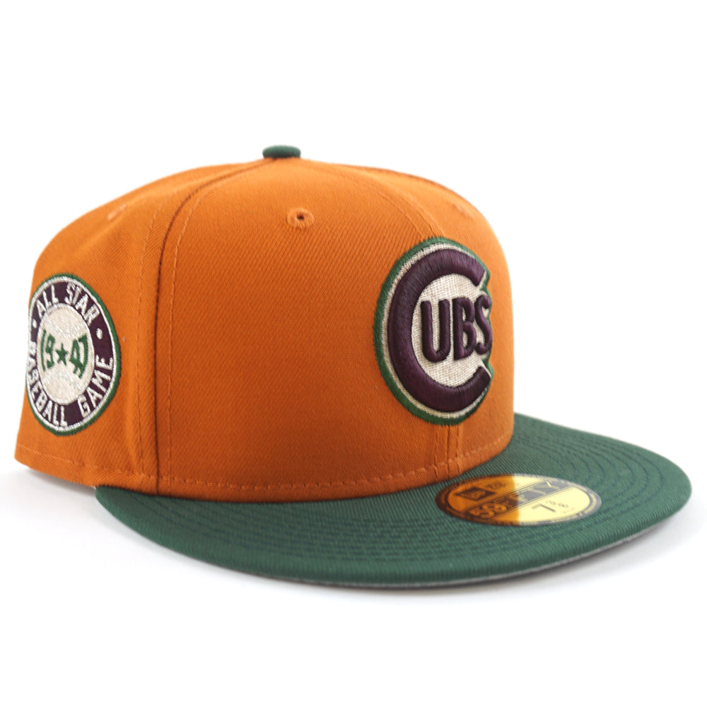 Chicago Cubs 1947 All Star Game New Era 59Fifty Fitted Hat (Fight Orange PINE GREEN GRAY Under Brim)