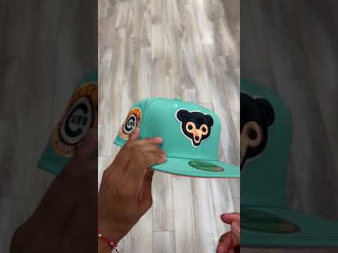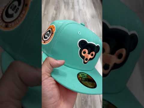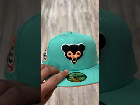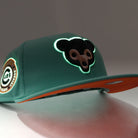 Chicago Cubs 1962 All Star Game 59Fifty New Era Fitted Hat in Clear Mint & Neon Orange Under Brim. Logo: Glow in the Dark