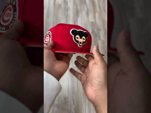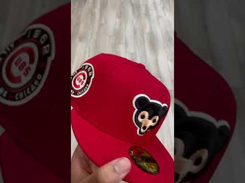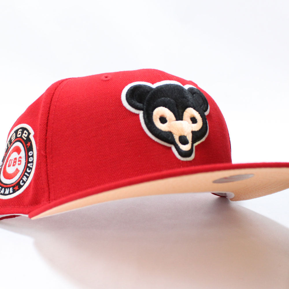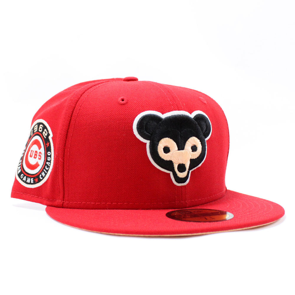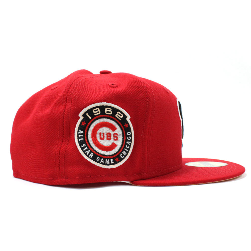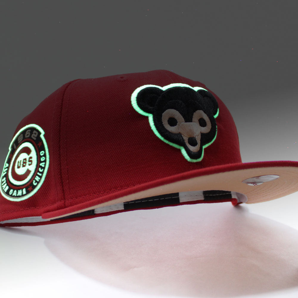 Chicago Cubs 1962 All Star Game 59Fifty New Era Fitted Hat in Red & Peach Under Brim. Logo: Glow in the Dark