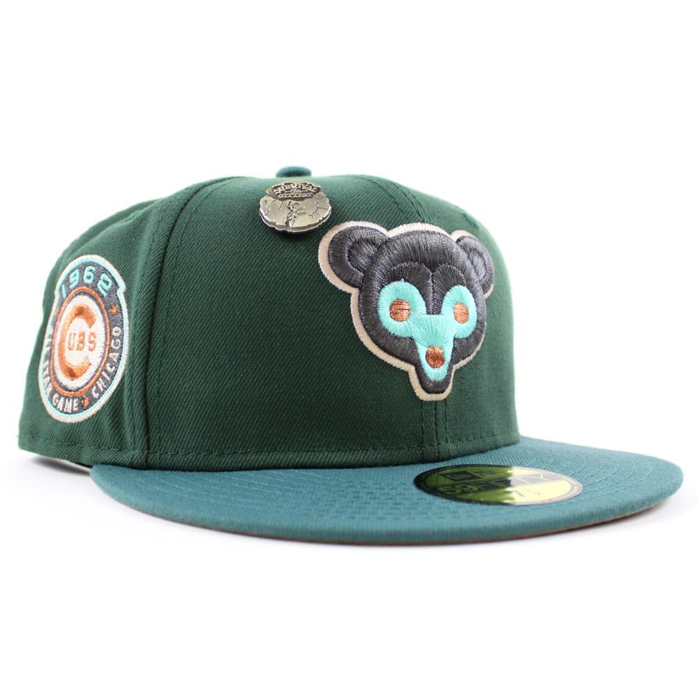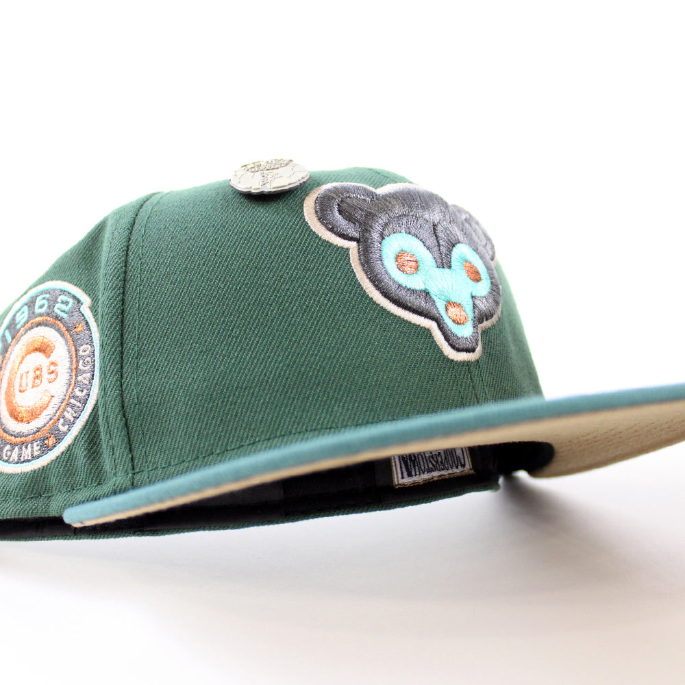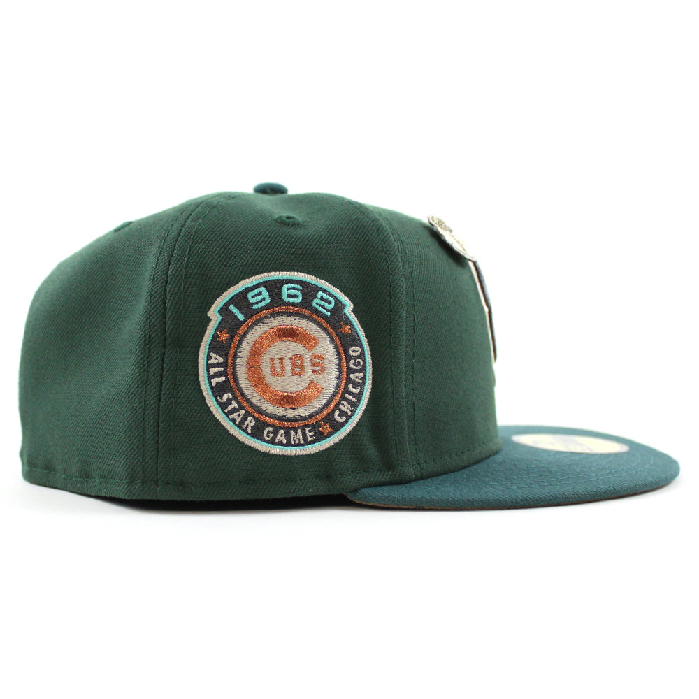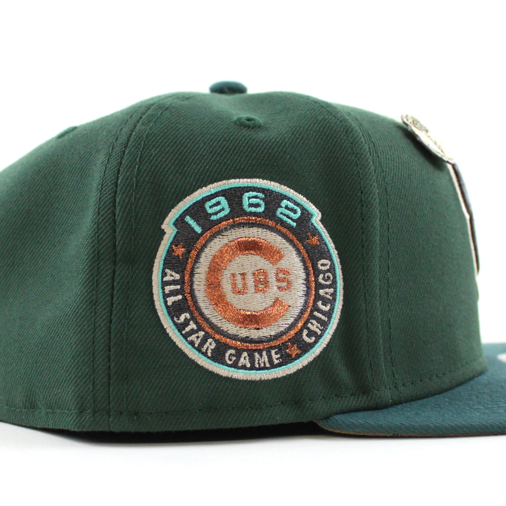 Chicago Cubs 1962 All Star Game 59Fifty New Era Fitted Hat in Green, Pine Green with Blue Visor & Khaki Under Brim.