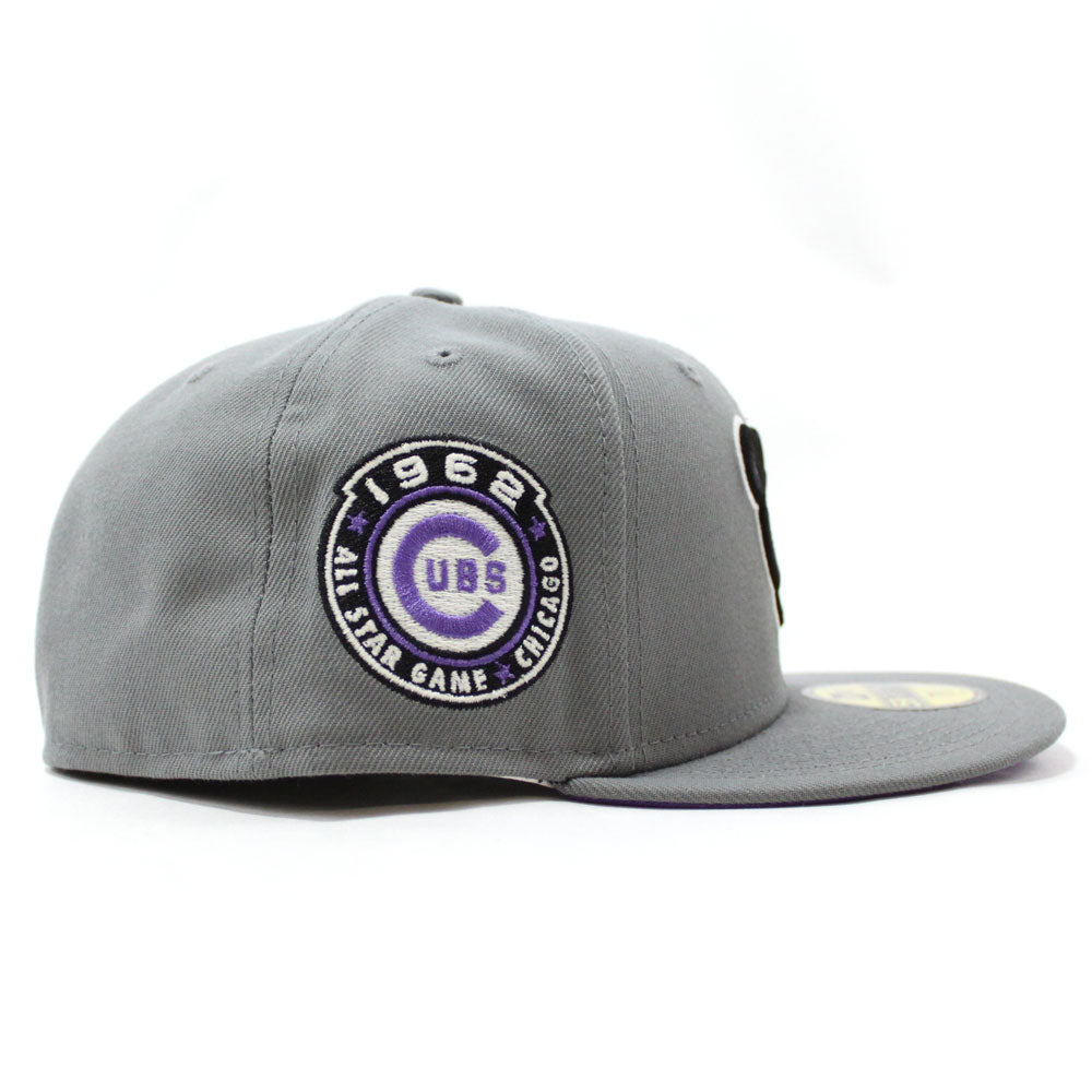Chicago Cubs 1962 All Star Game 59Fifty New Era Fitted Hat in Grey & Light Purple Under Brim.