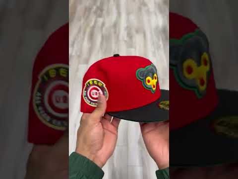Chicago Cubs 1962 All Star Game 59Fifty New Era Fitted Hat in Red with Black Metallic Black, Green Yellow & Green Under Brim.