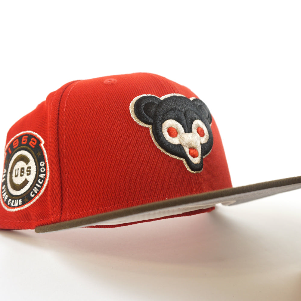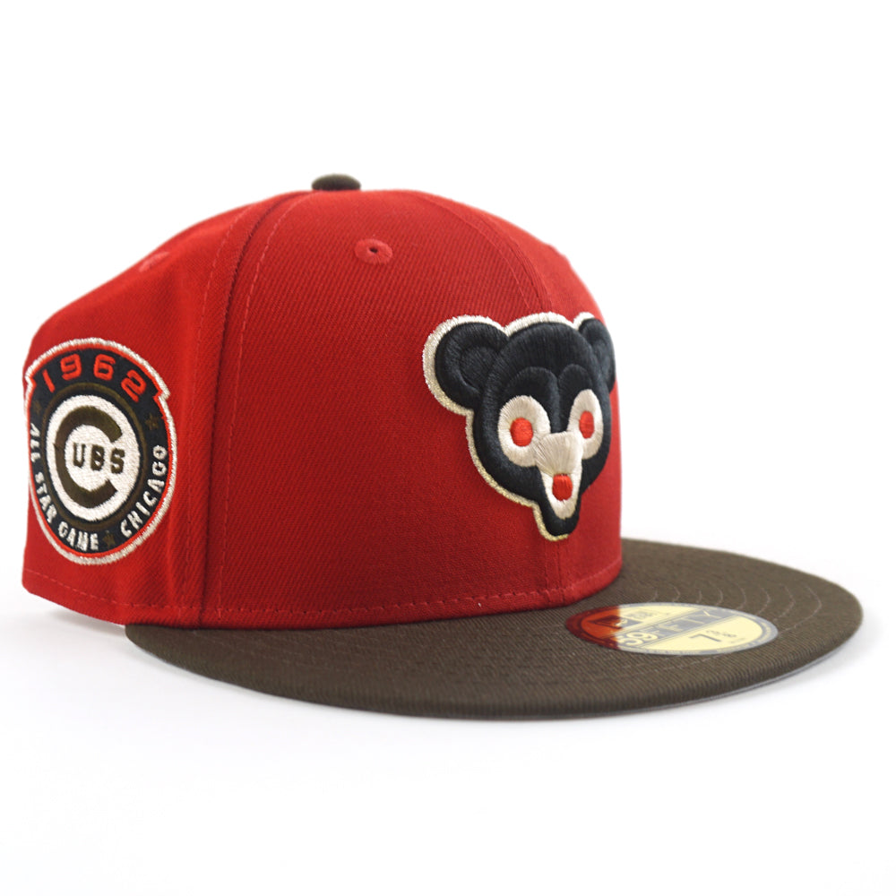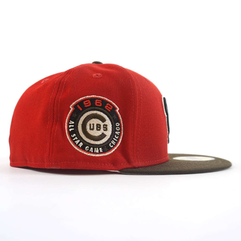 Chicago Cubs 1962 All Star Game 59Fifty New Era Fitted Hat in Red, Brown & Gray Under Brim.