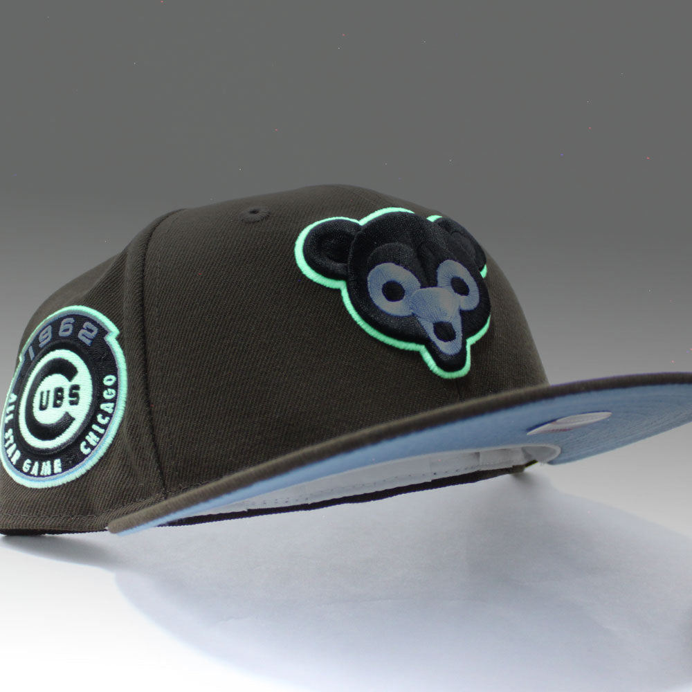 Chicago Cubs 1962 All Star Game New Era 59Fifty Fitted Hat (Glow in the Dark Walnut Sky Blue Under Brim)