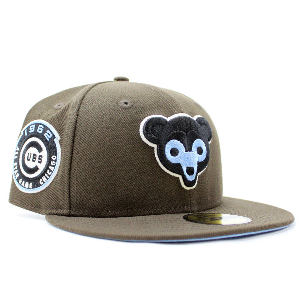 Chicago Cubs 1962 All Star Game 59Fifty New Era Fitted Hat in Walnut & Sky Blue Under Brim.