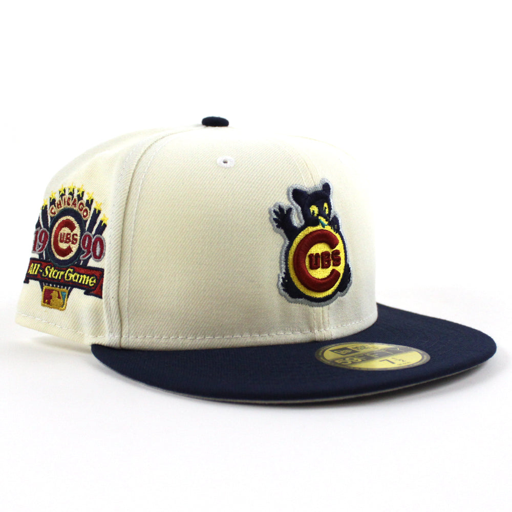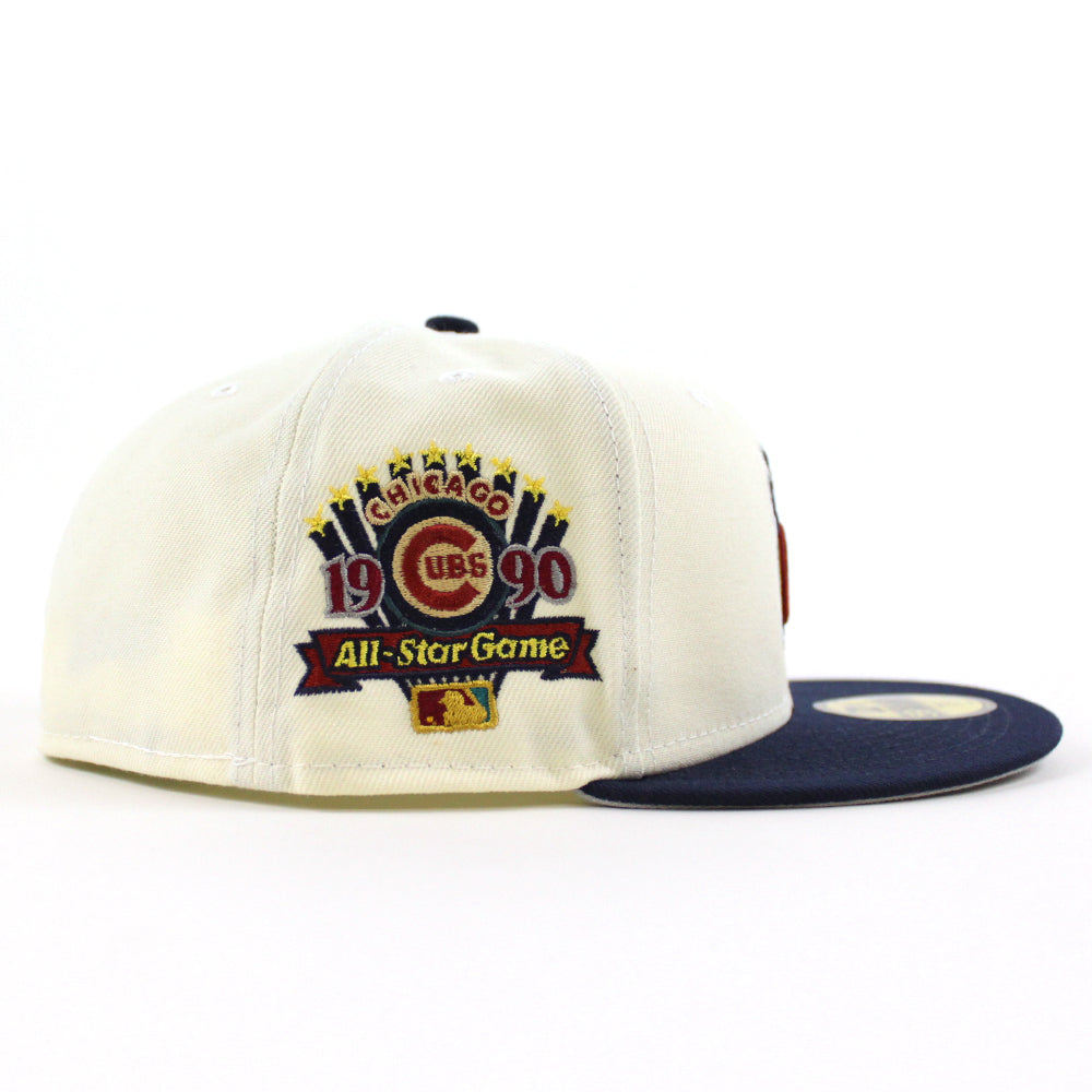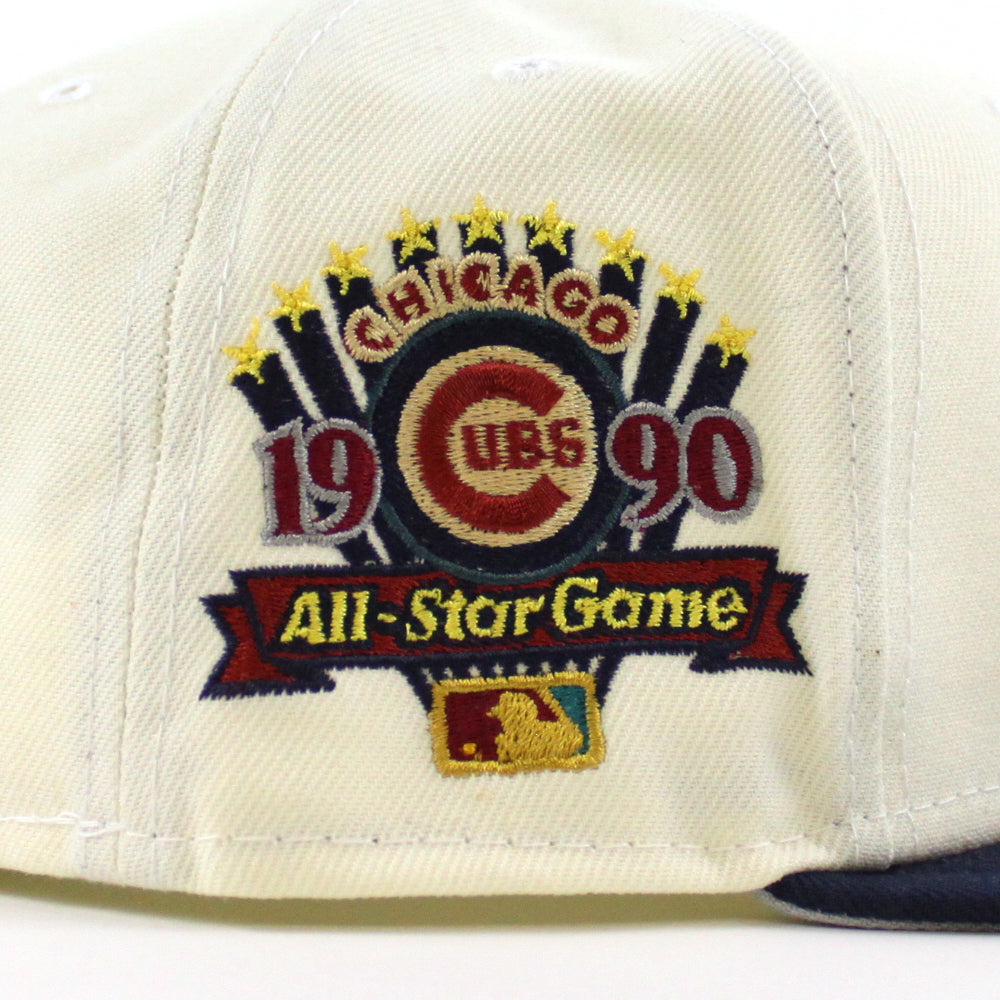 Chicago Cubs 1990 ALL STAR GAME New Era 59Fifty Fitted Hat (CHROME WHITE NFL OCEANSIDE BLUE DOLPHIN GREY Under Brim)