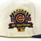 Chicago Cubs 1990 All Star Game 59Fifty New Era Fitted Hat in Chrome White, OceanSide Blue and Dolphin Gray Under Brim.