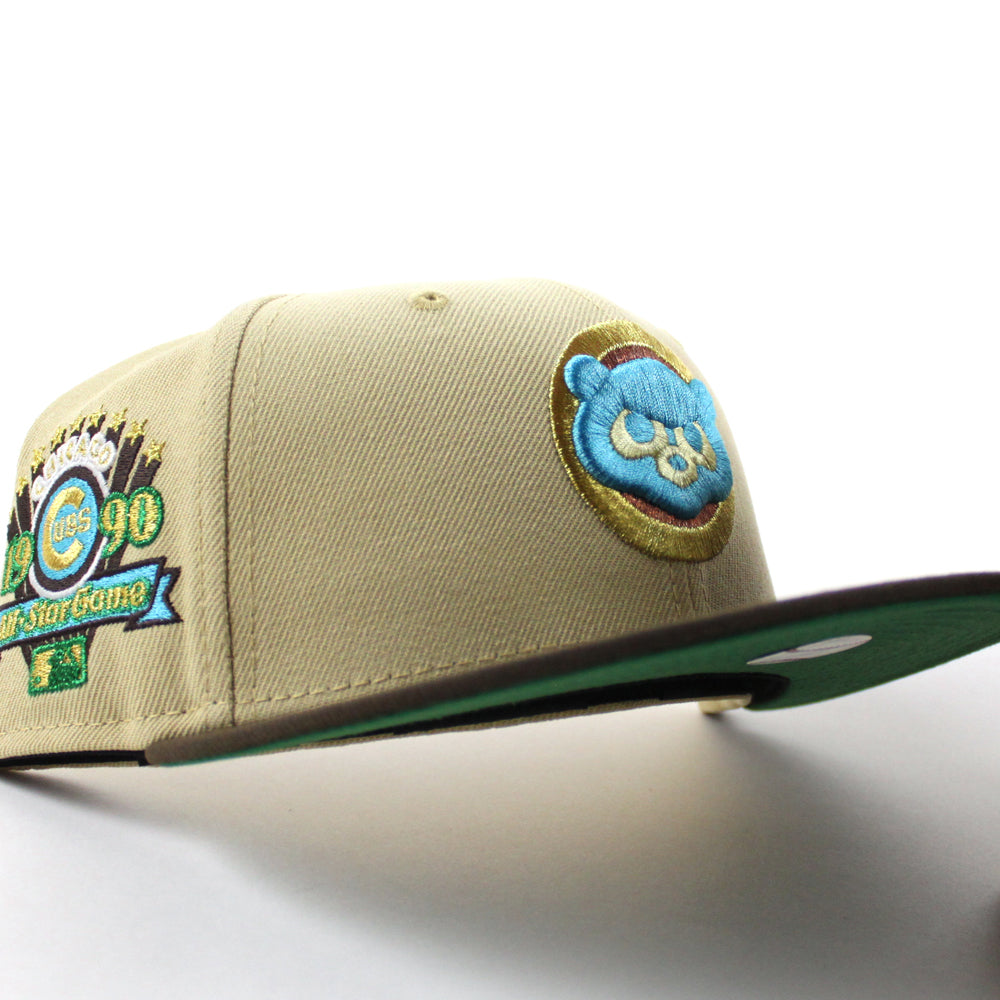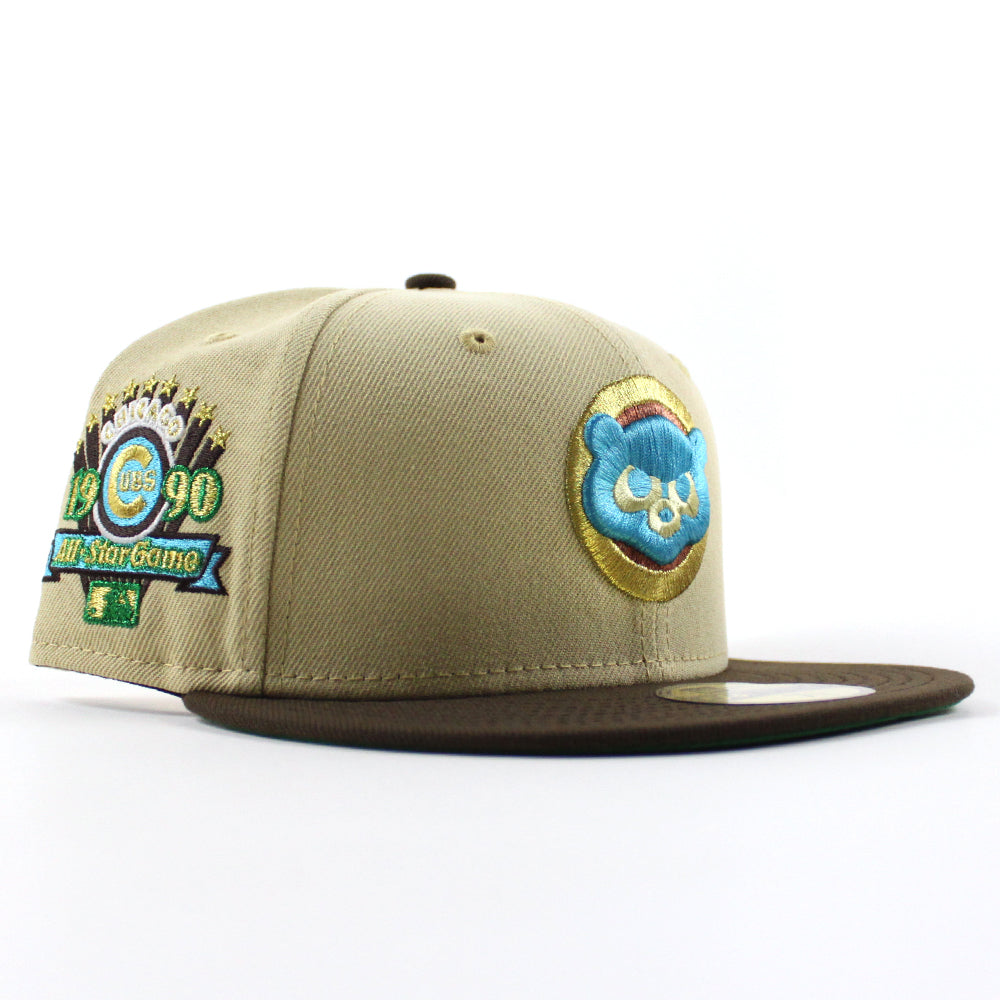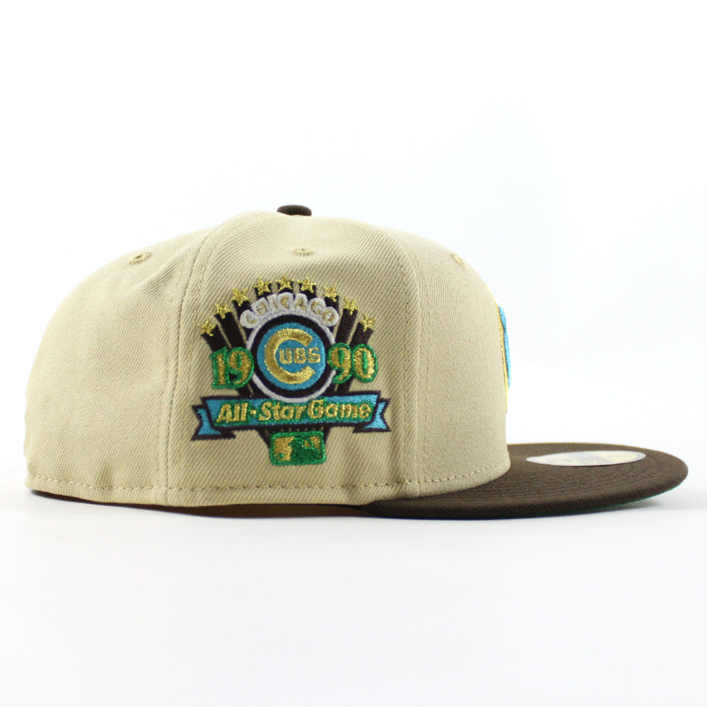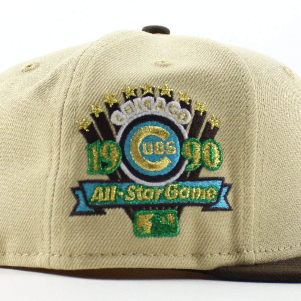 Chicago Cubs 1990 All Star Game 59Fifty New Era Fitted Hat in Vegas Gold, Walnut and Green Under Brim.