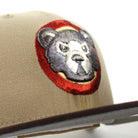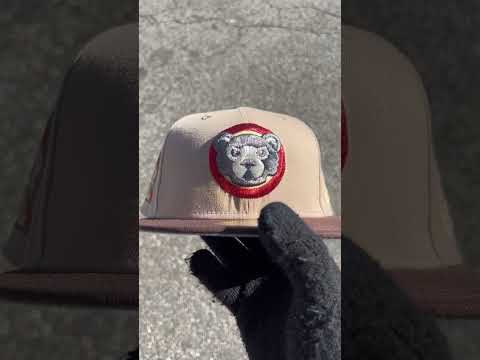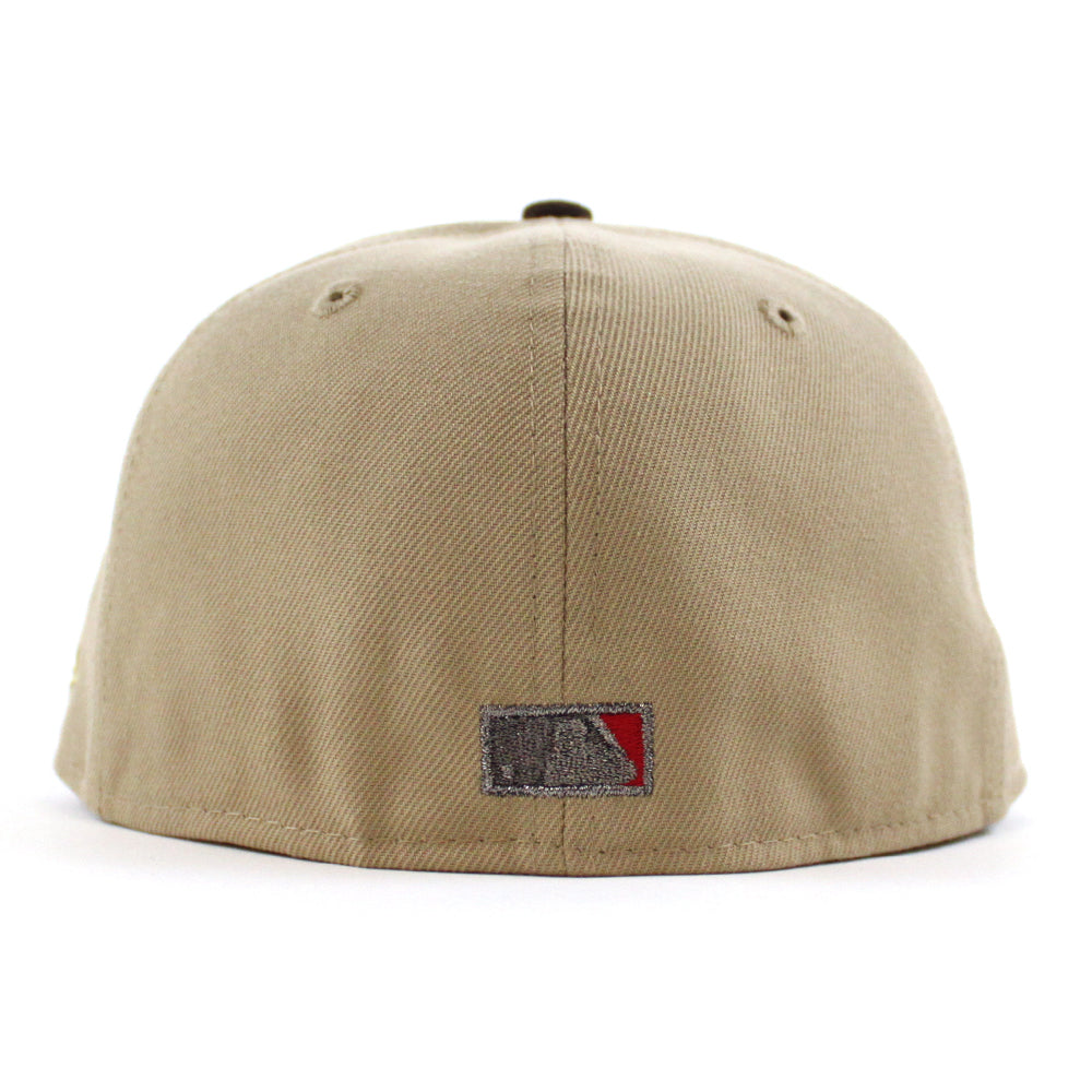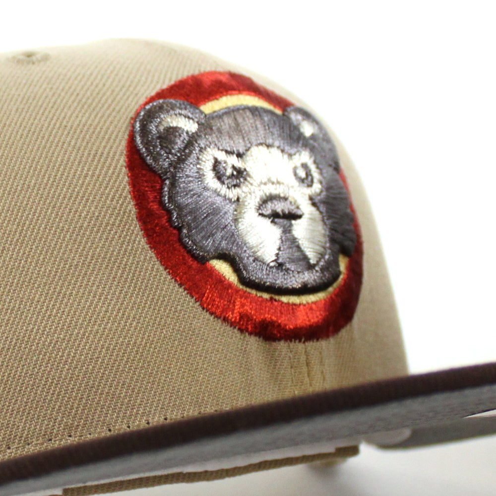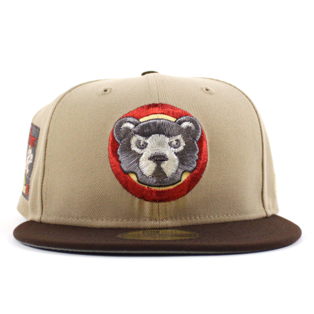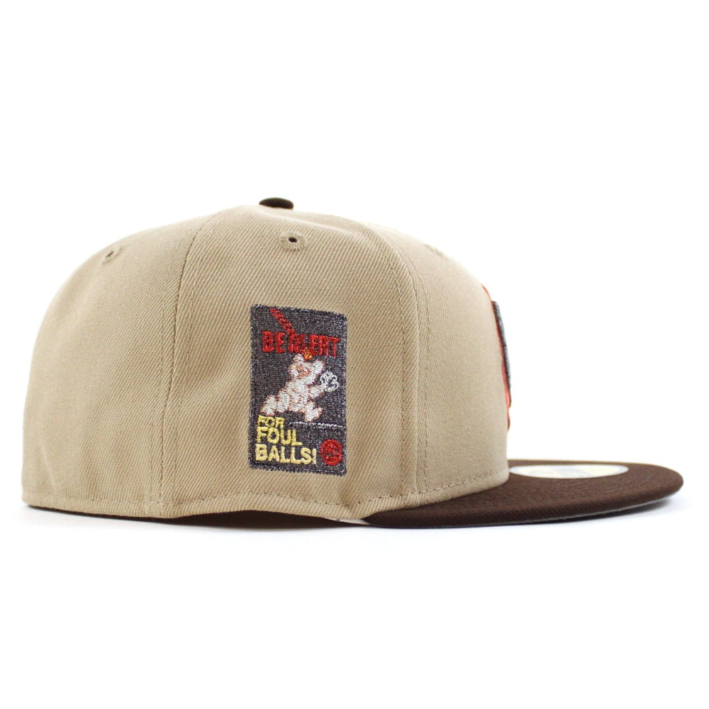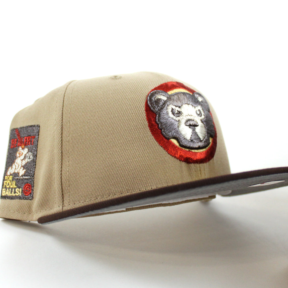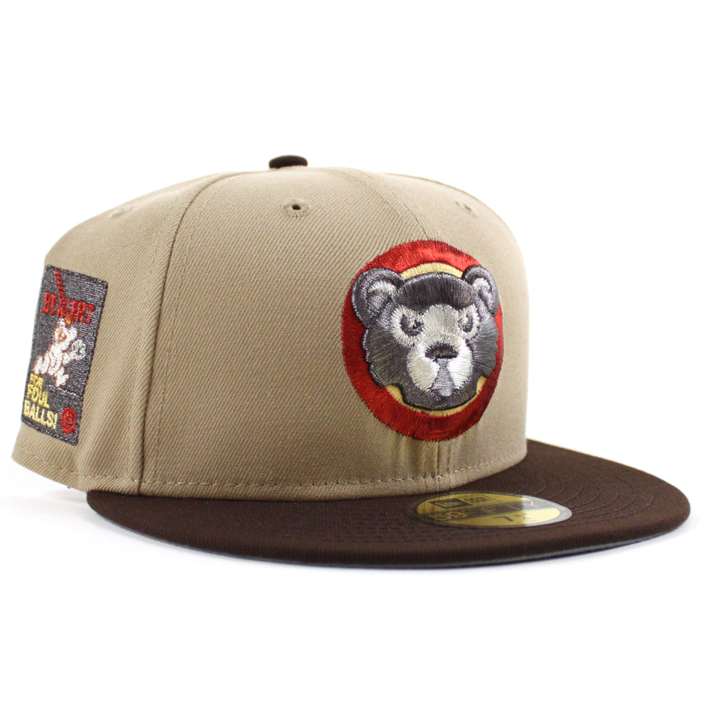 Chicago Cubs Be Alert For Foul Balls 59Fifty New Era Fitted Hat in Camel, Burnt Wood and Storm Gray Under Brim.