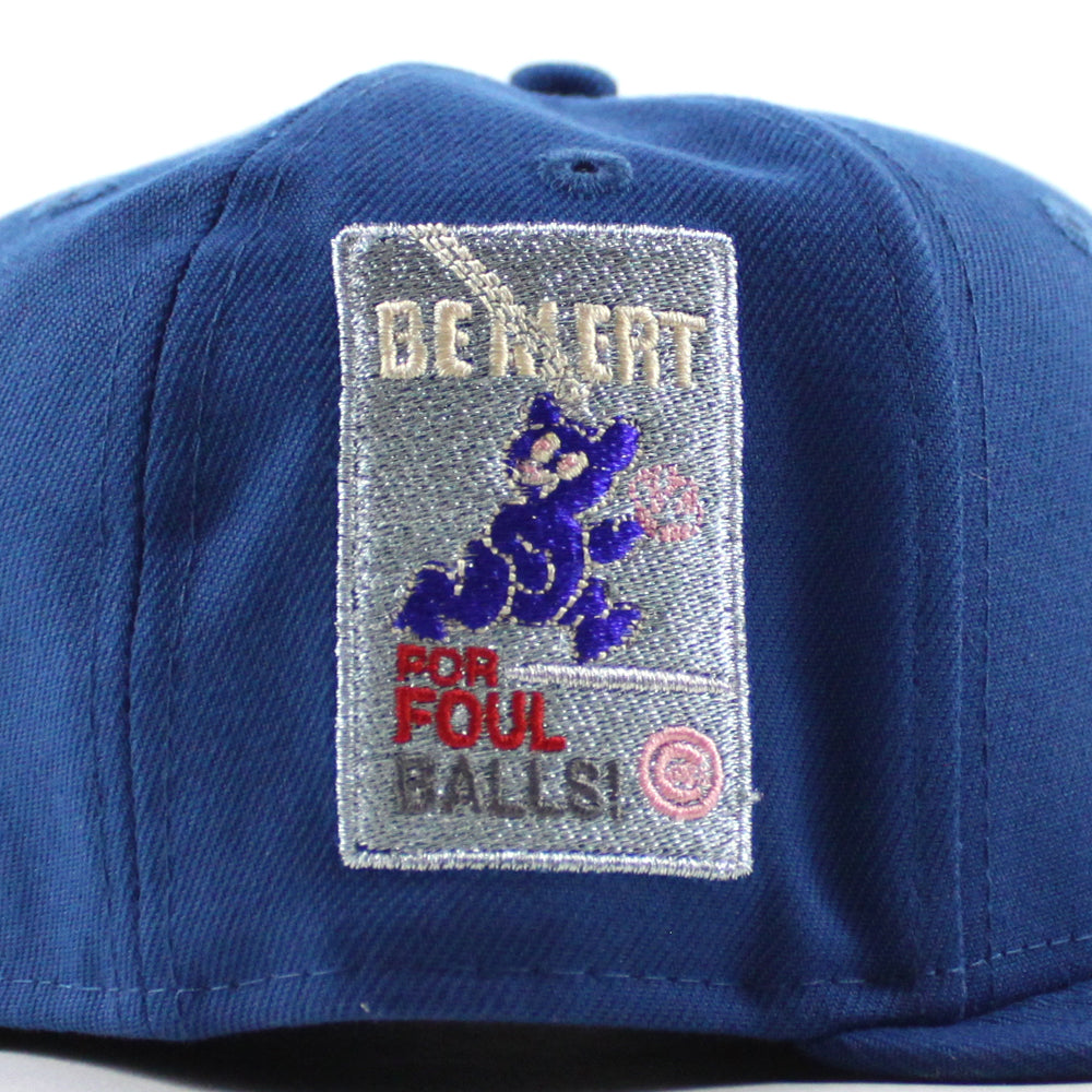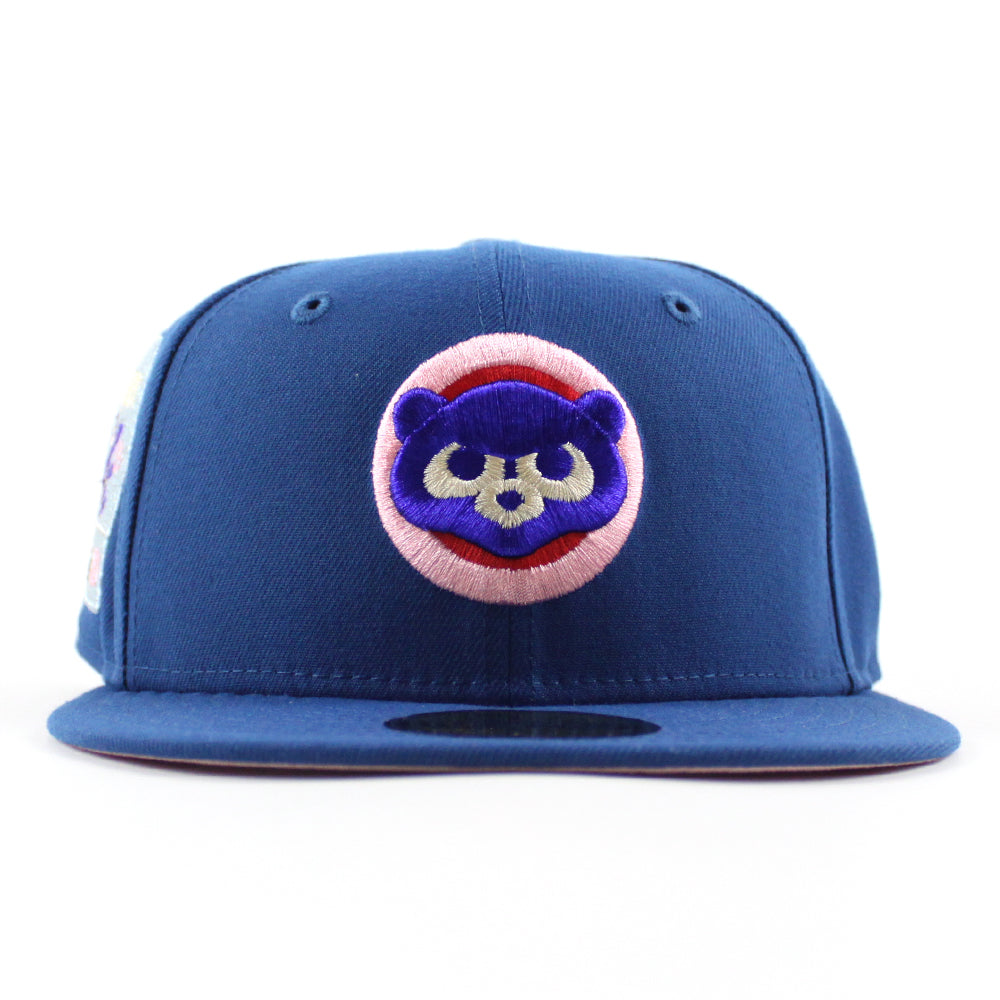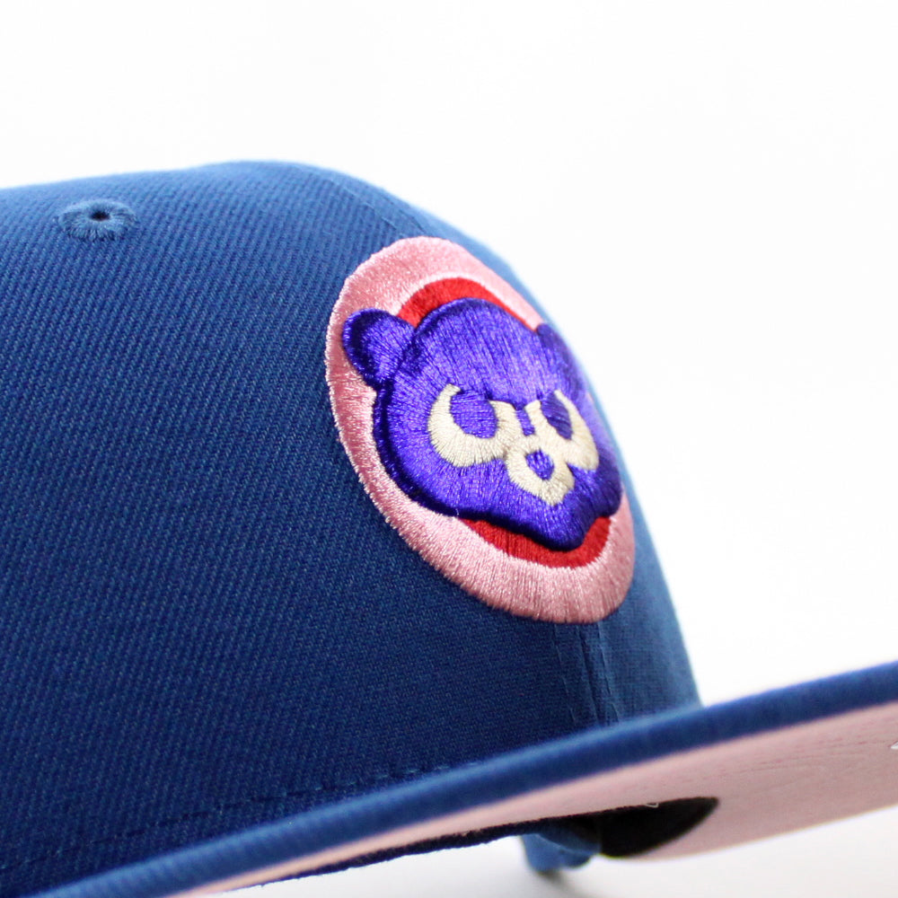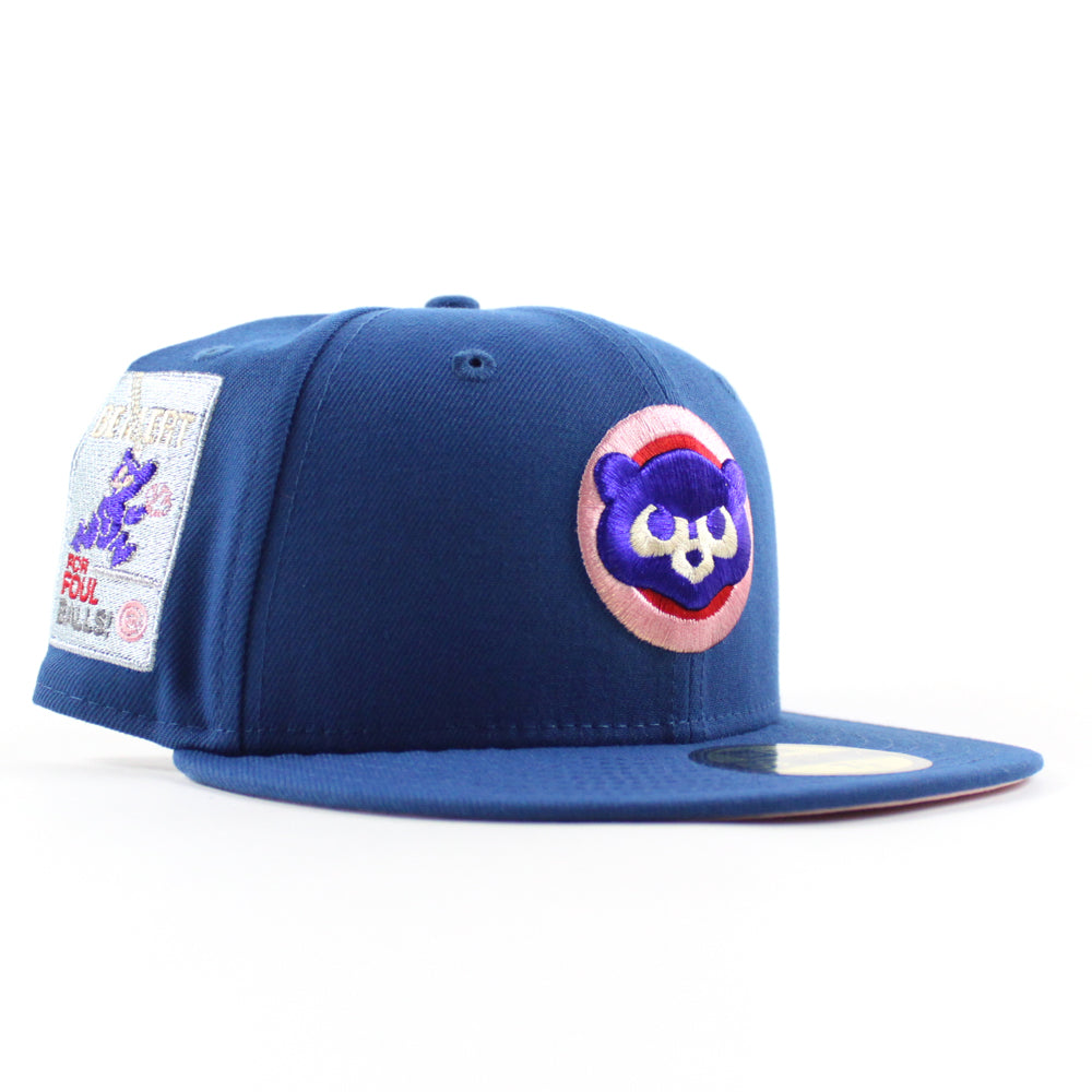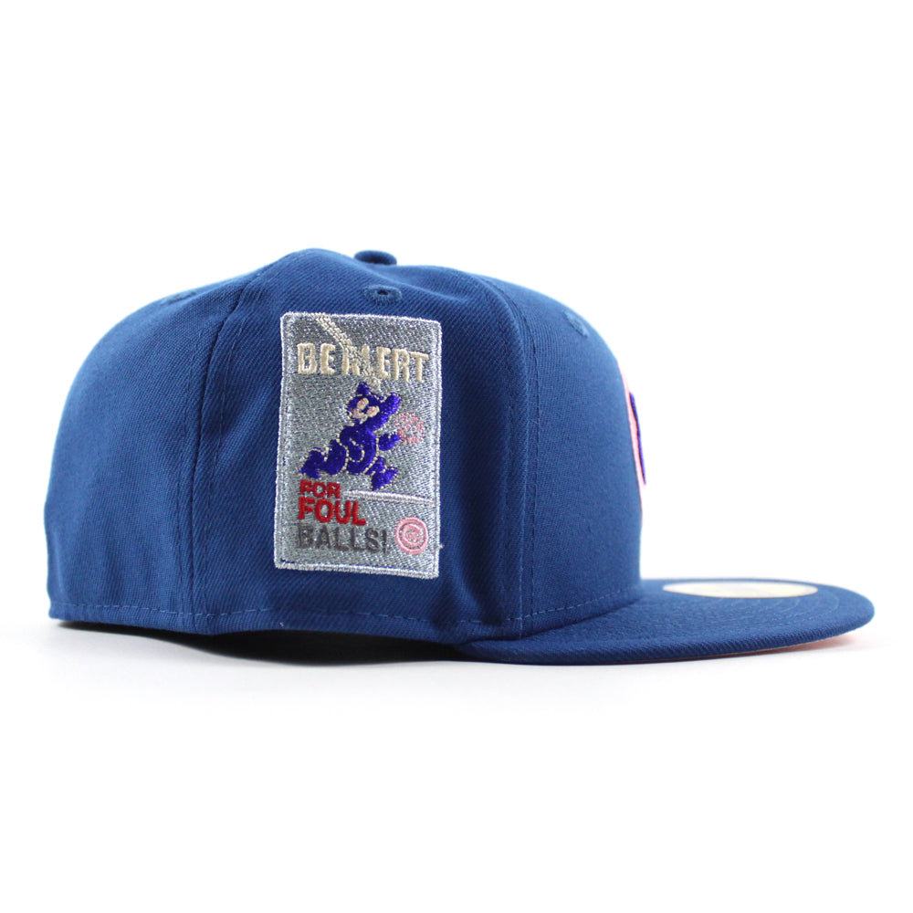 Chicago Cubs Alert For Foul Balls 59Fifty New Era Fitted Hat in Seashore Blue and Pink Under Brim.