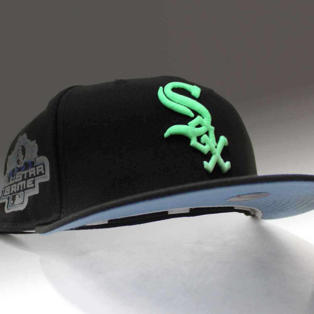 Chicago White Sox 2003 All-Star Game New Era Fitted 59Fifty Hat (Glow in the Dark Black Sky Blue Under Brim)
