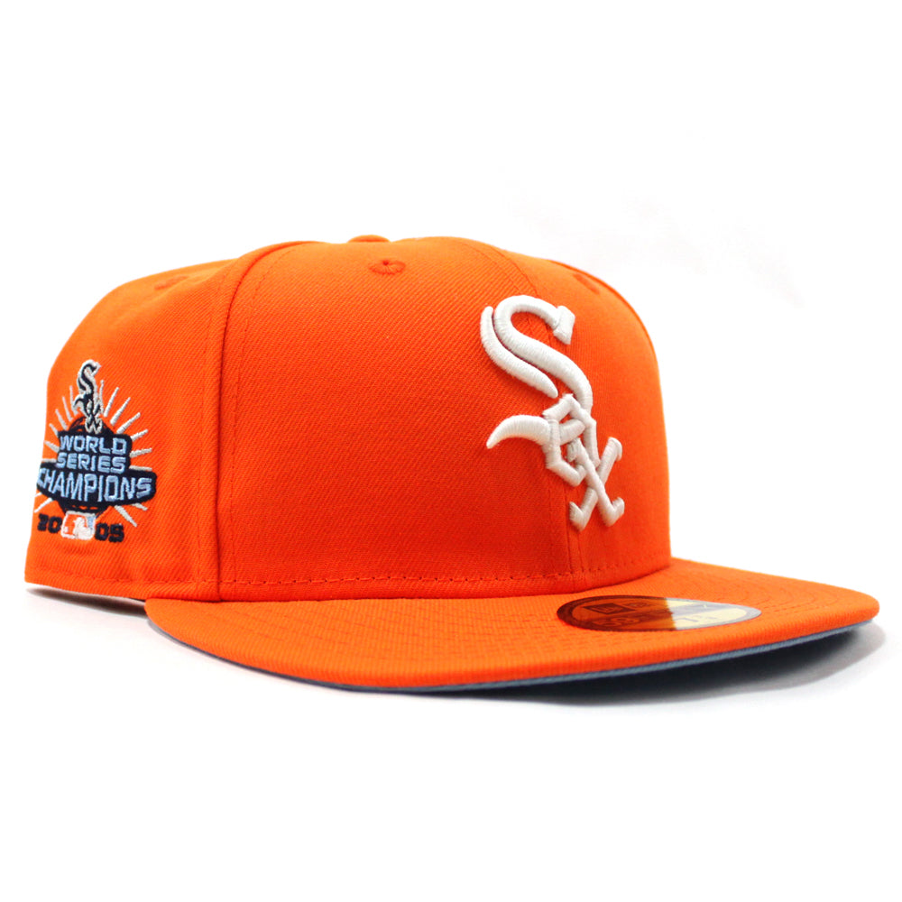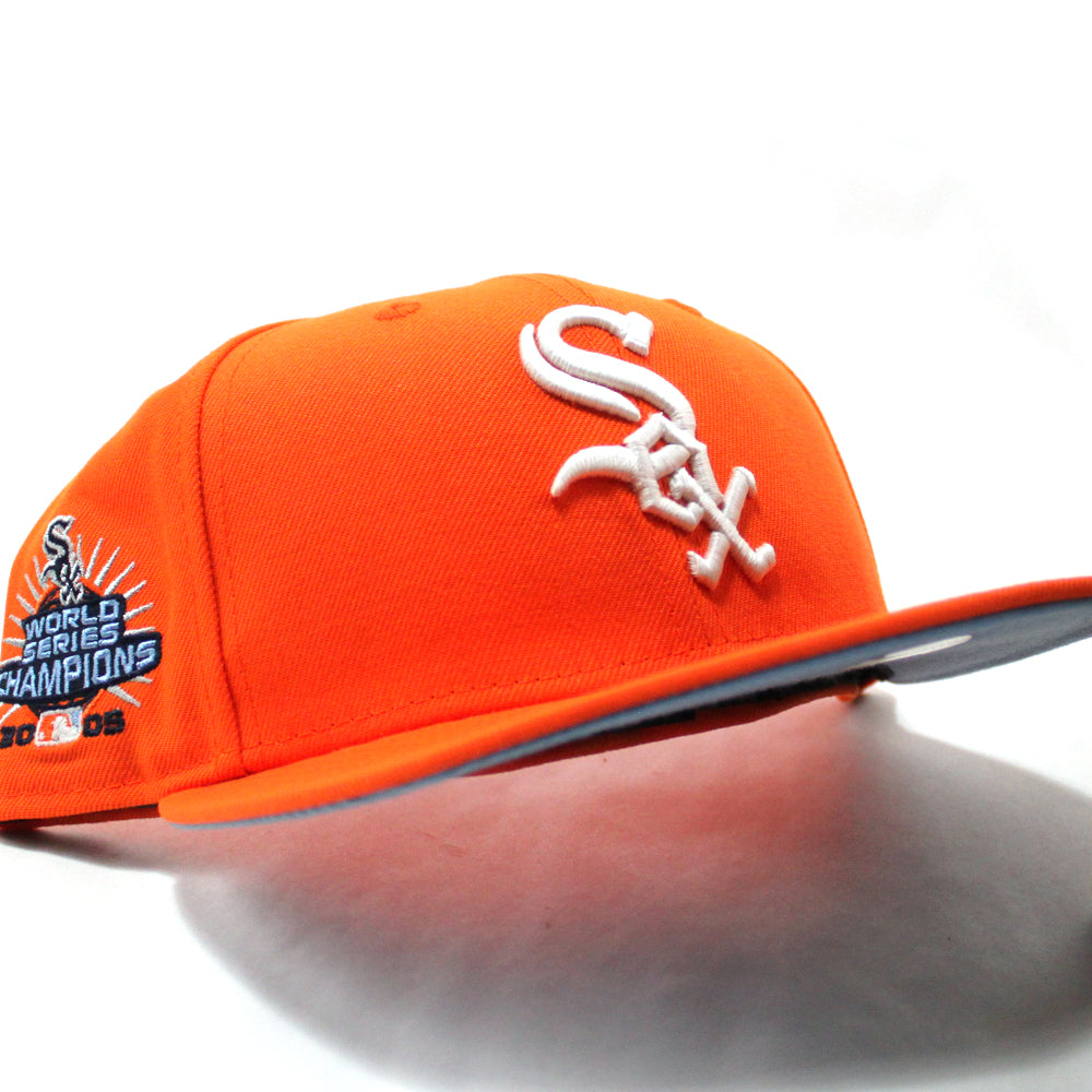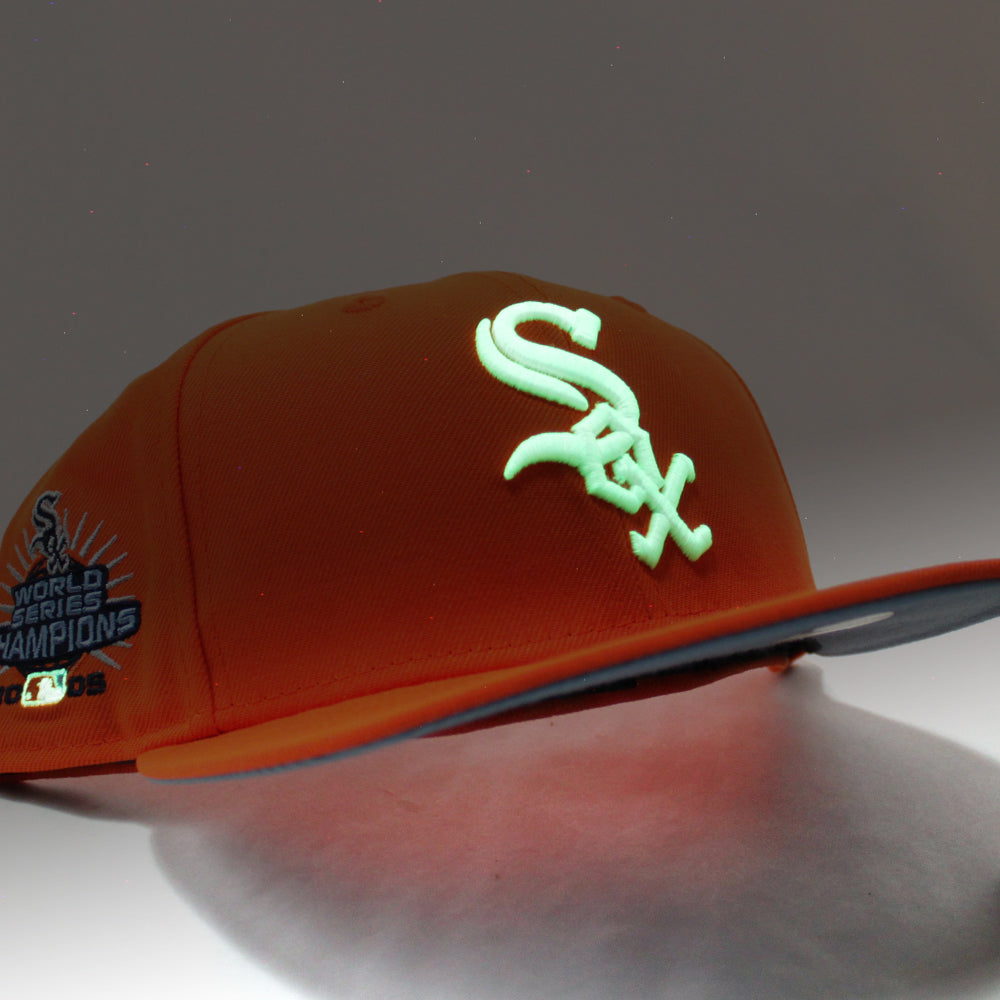Chicago White Sox 2005 World Series CHAMPIONS New Era Fitted 59Fifty Hat (GITD Rush Orange Sky Blue Under Brim)