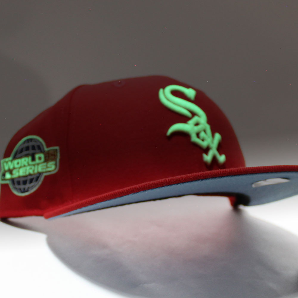 Chicago White Sox 2005 World Series Patch New Era Fitted 59Fifty Hat (Glow in the Dark Red Sky Blue Under Brim)