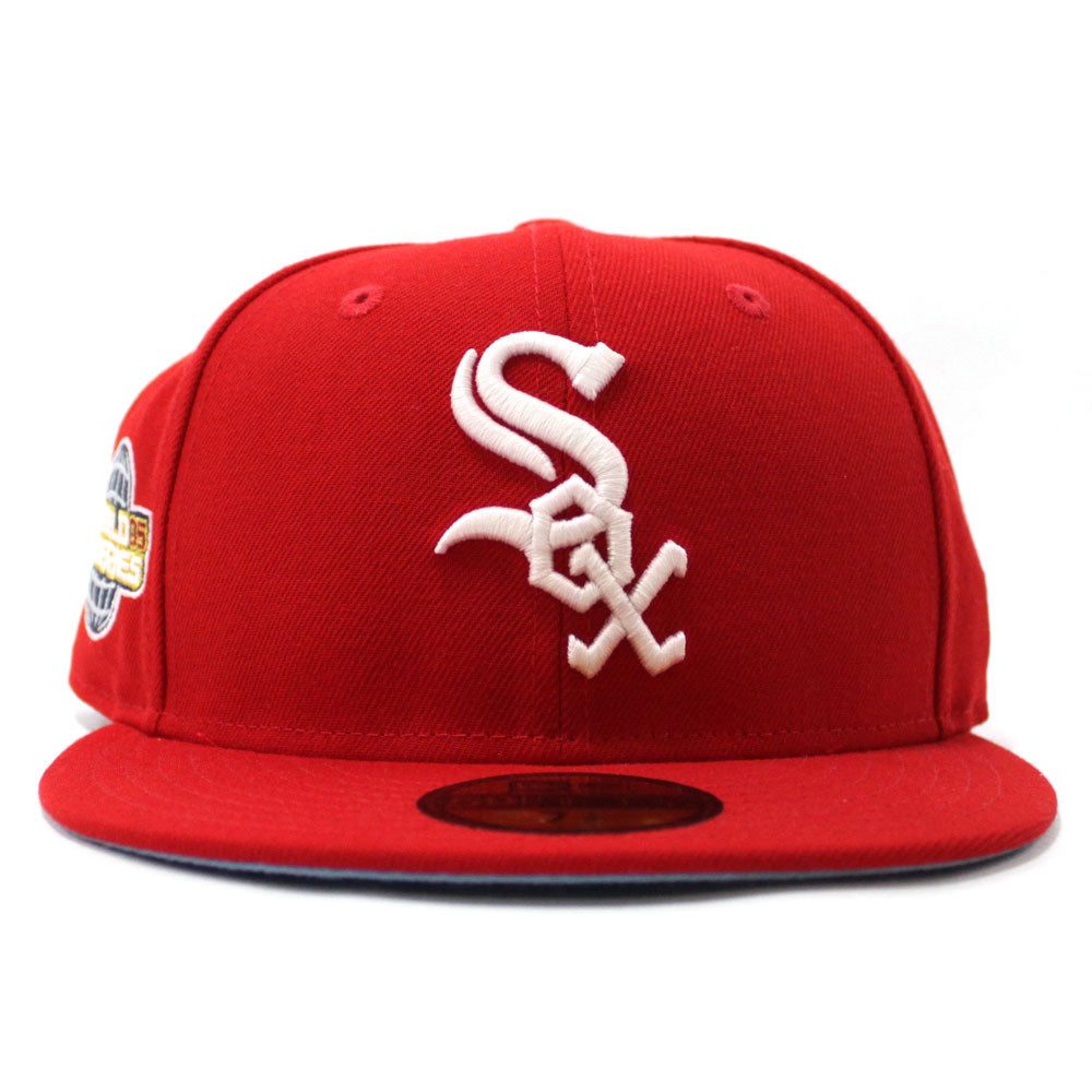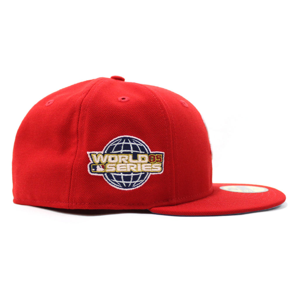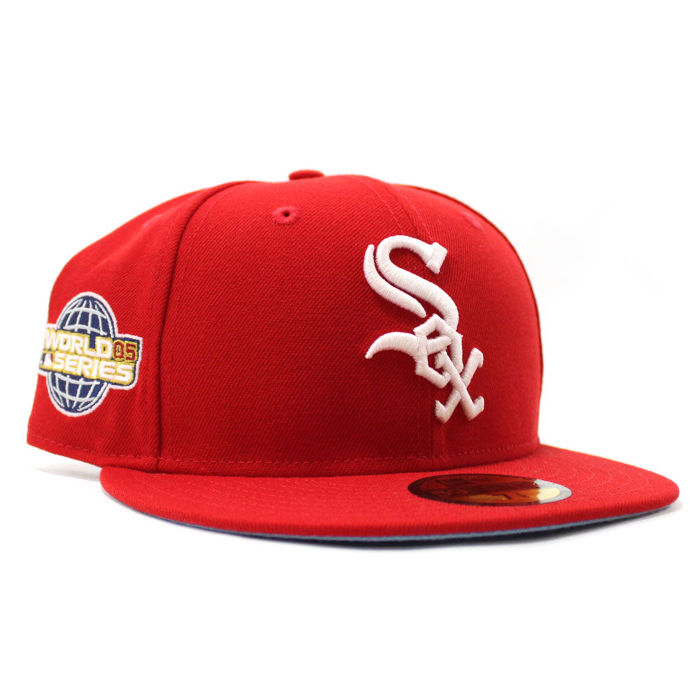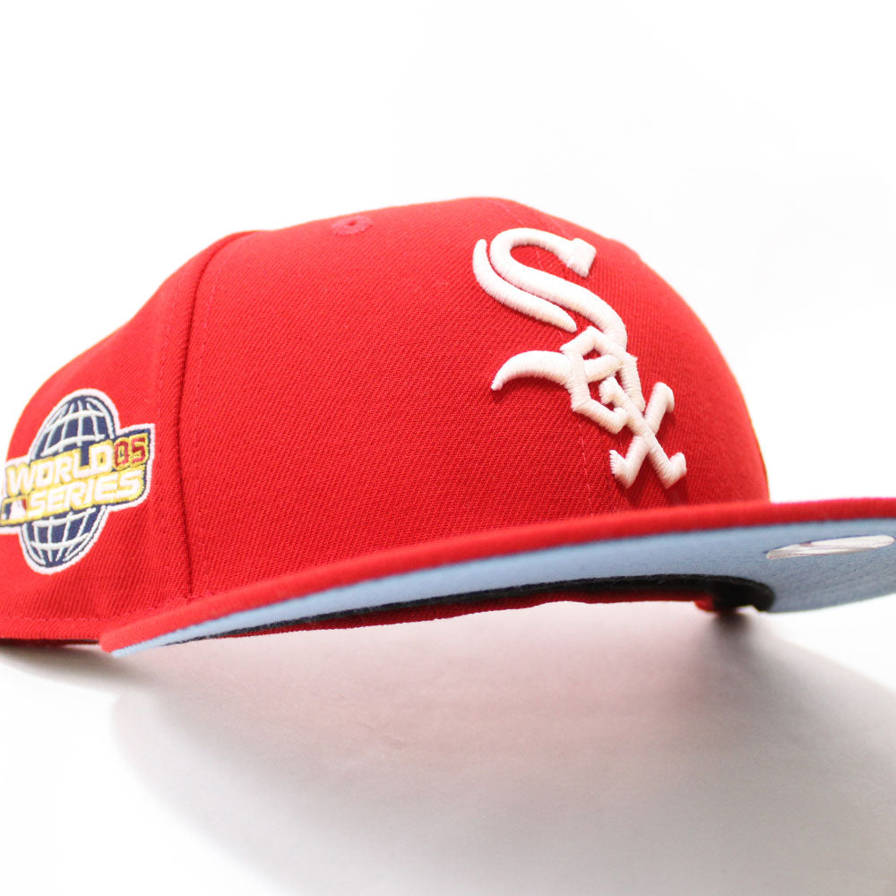 Chicago White Sox 2005 World Series New Era Fitted 59Fifty Cap in Red & Sky Blue Under Brim.