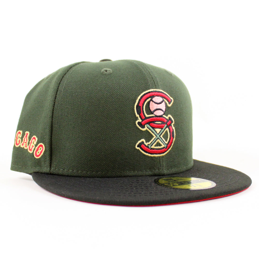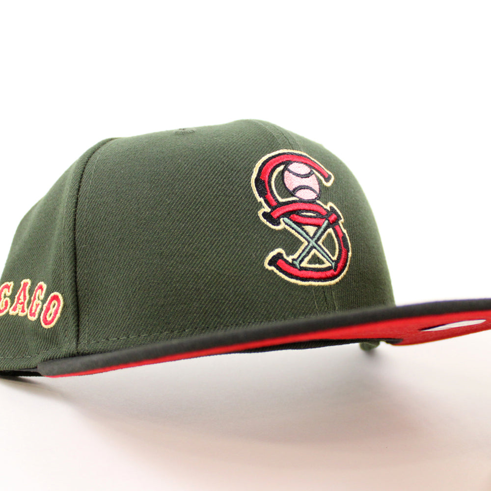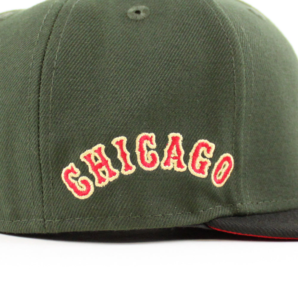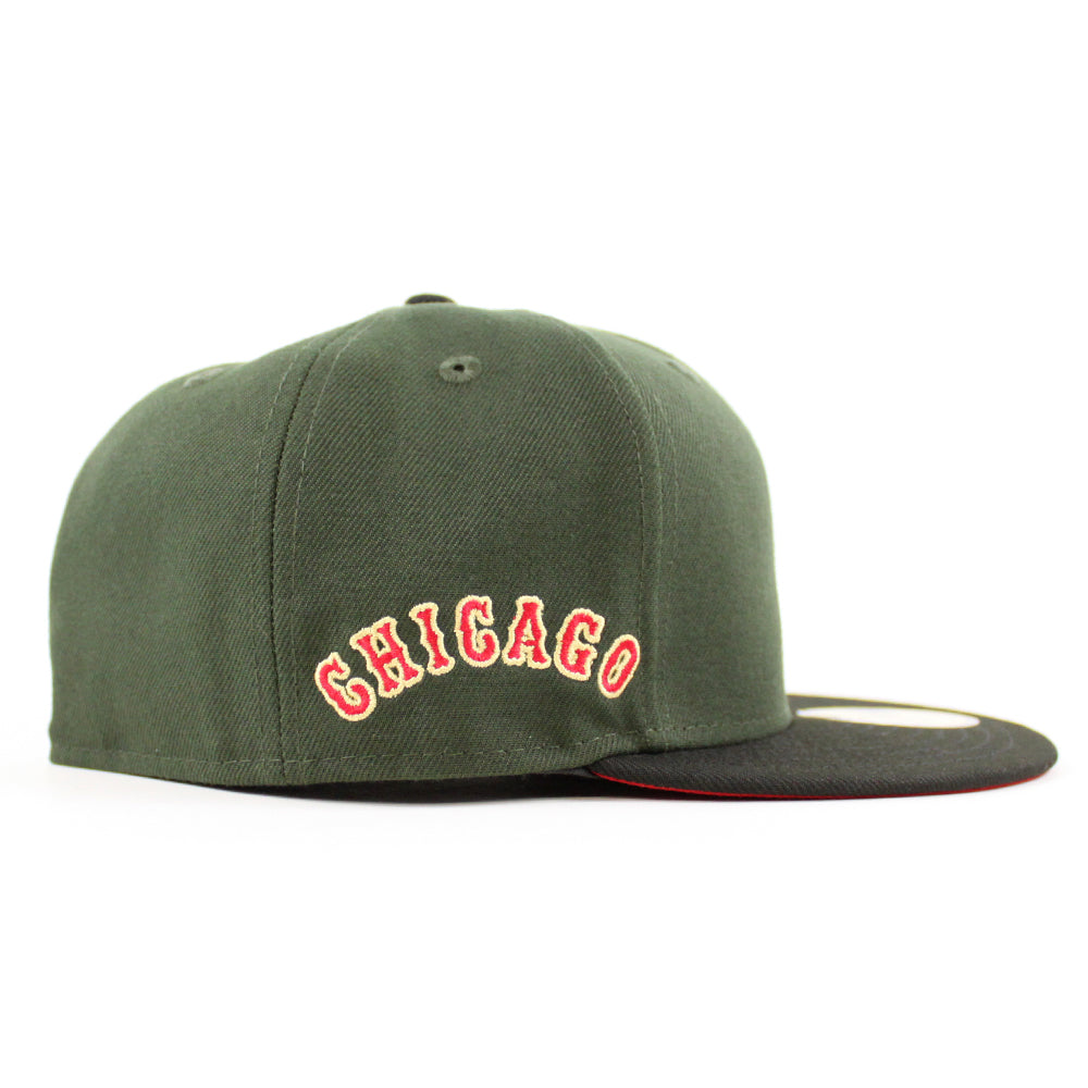 Chicago White Sox Chicago Patch New Era Fitted 59Fifty Cap in Dark SeaWeed, Black and Scarlet Under Brim. 11