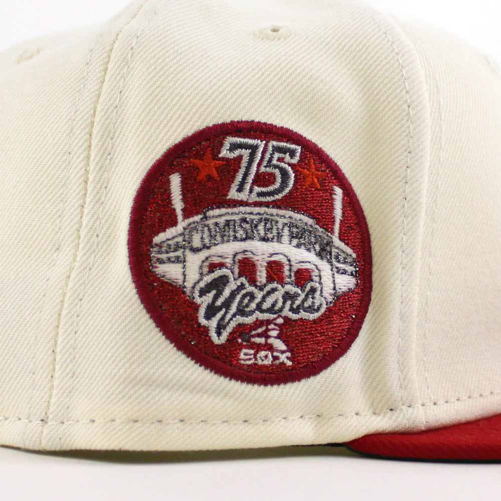 Chicago White Sox COMISKEY PARK New Era Fitted 59Fifty Hat (Chrome White Scarlet Red Gray Under Brim)