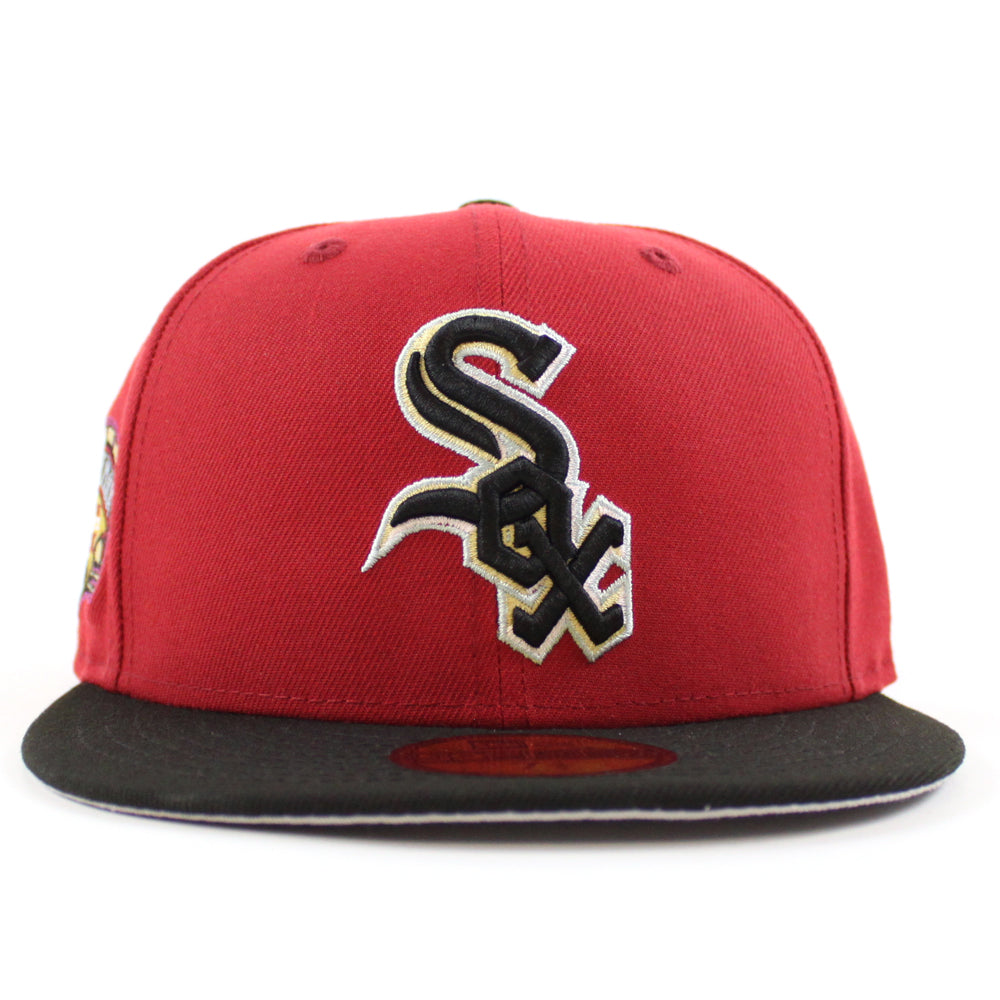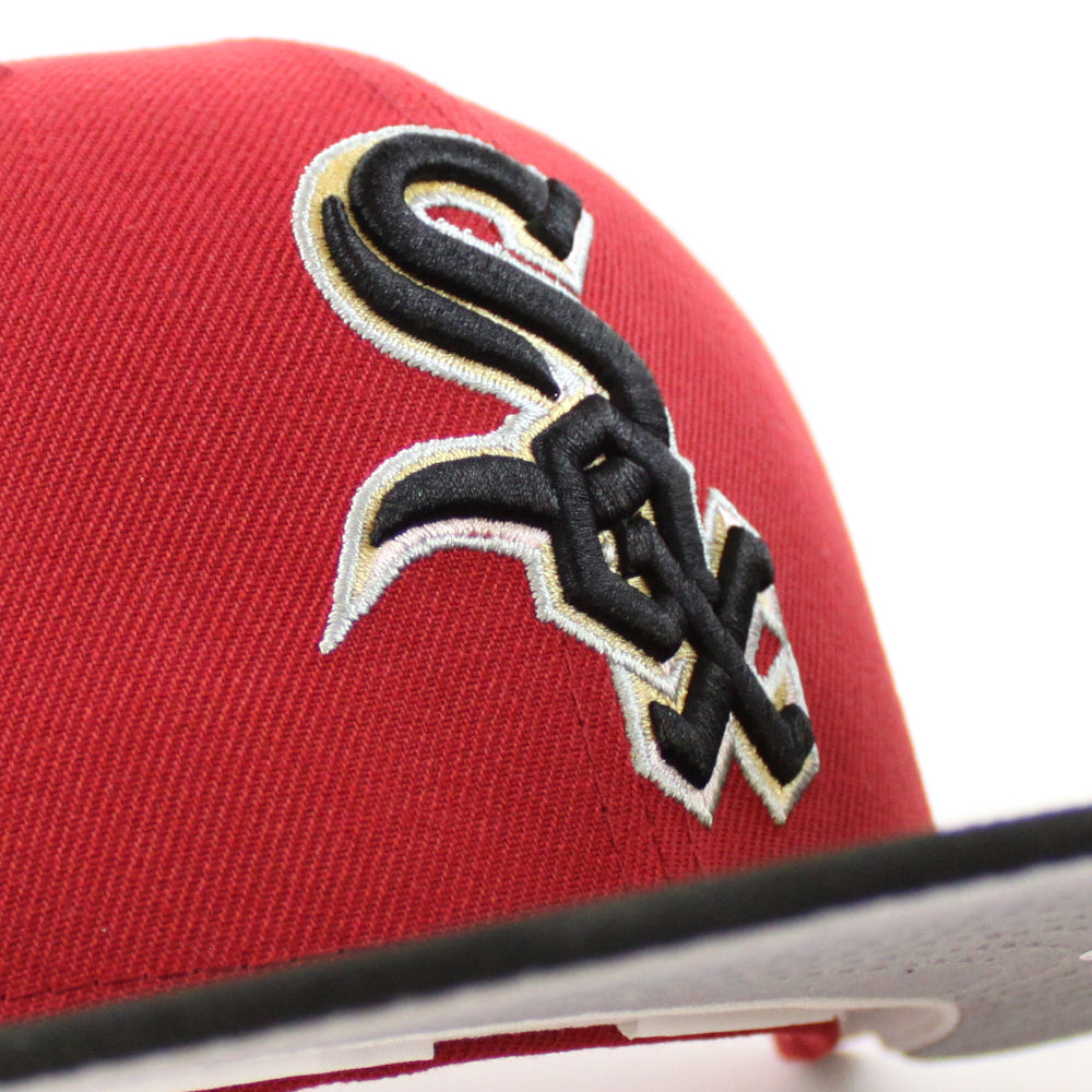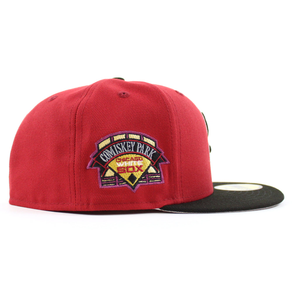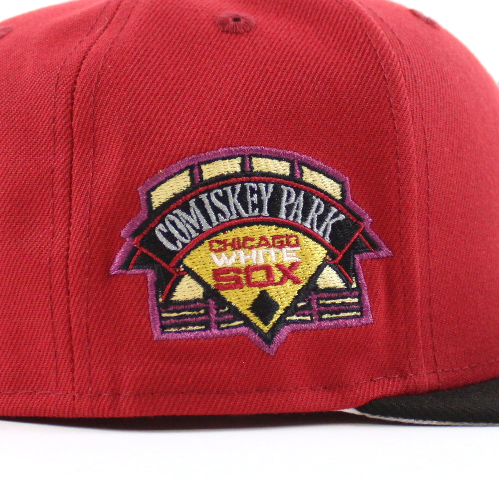 Chicago White Sox COMISKEY Park New Era Fitted 59Fifty Hat (Pinot Red Black Gray Under Brim)