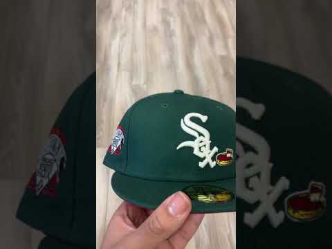 Chicago White Sox Deep Dish Comiskey Park Patch New Era Fitted 59Fifty Cap in Green & Red Under Brim.