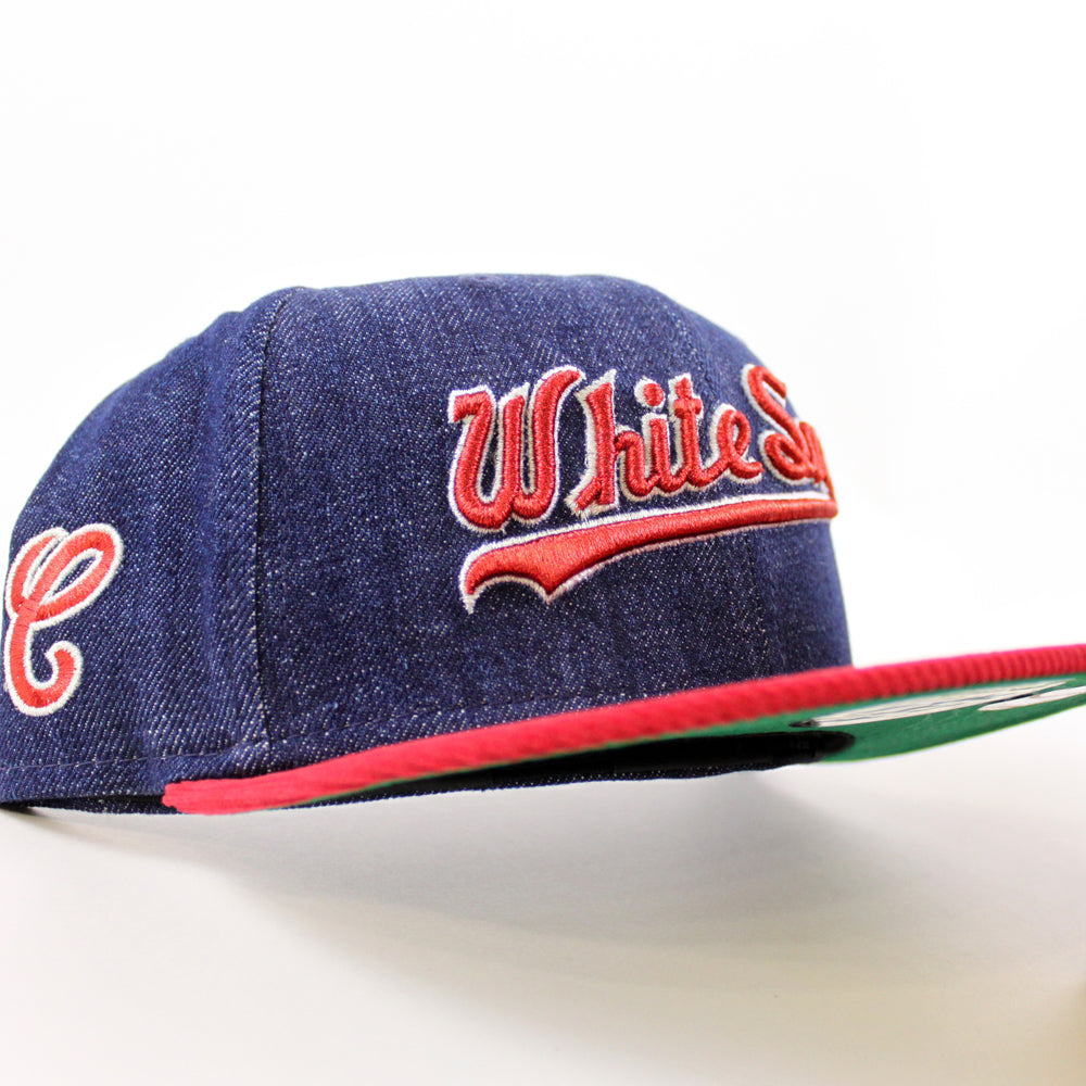 Chicago White Sox New Era Fitted 59Fifty Hat (Denim Scarlet Green Under Brim)