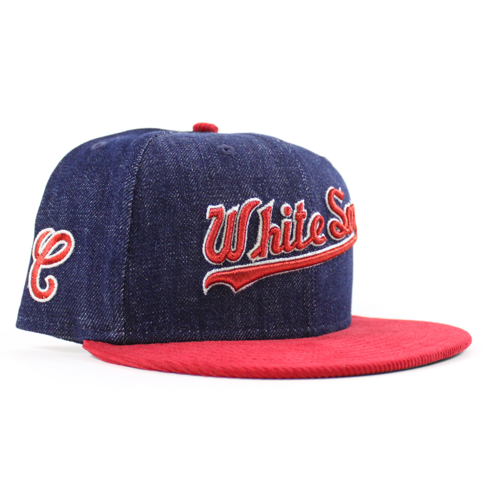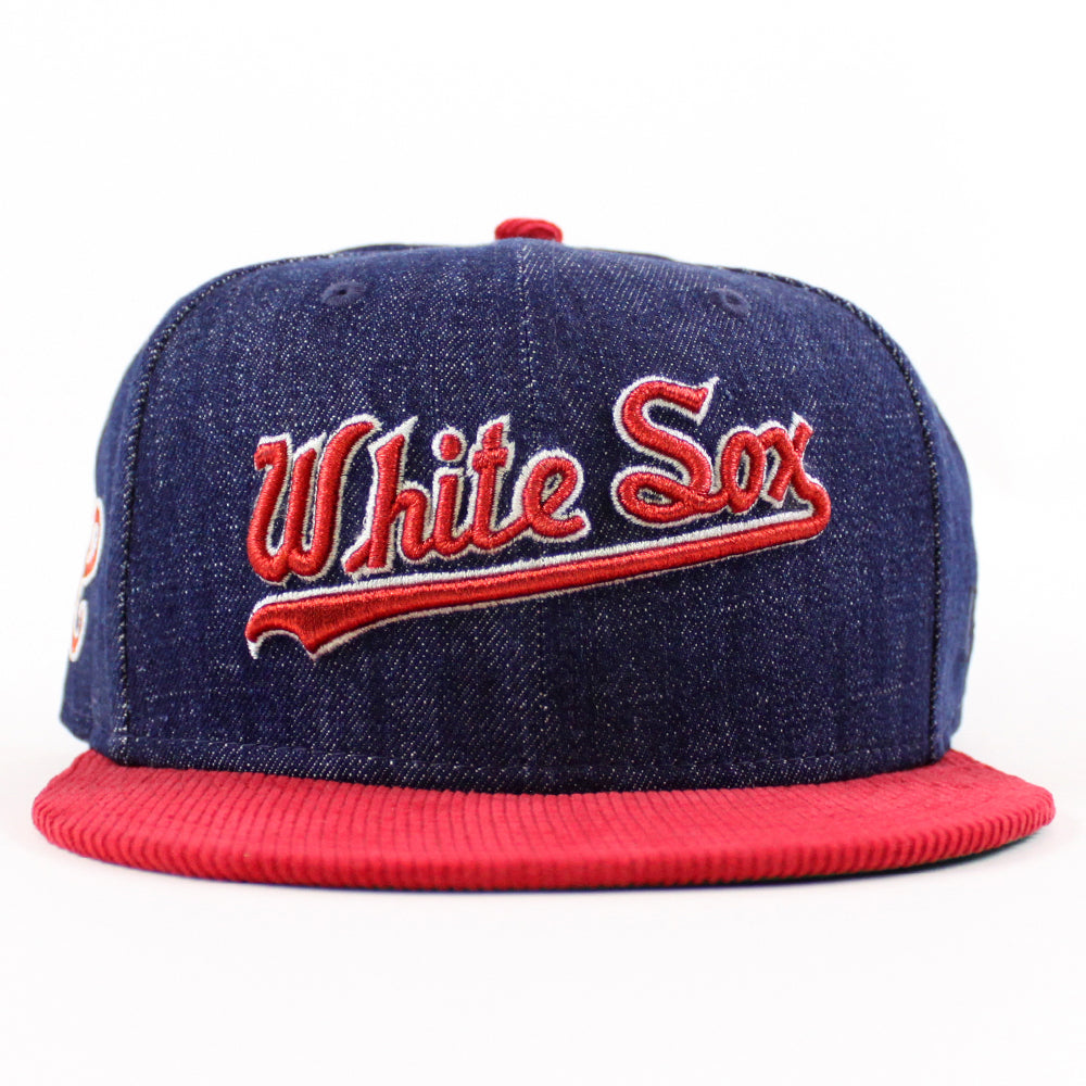 Chicago White Sox New Era Fitted 59Fifty Cap in Denim, Scarlet Corduroy and Green Under Brim. 25