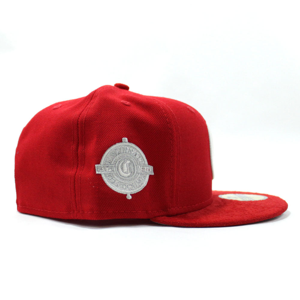 Cincinnati Red Stockings 1890-1899 Retro New Era 59Fifty Fitted Hat (Red Wool Red SUEDE Visor Gray Under Brim)
