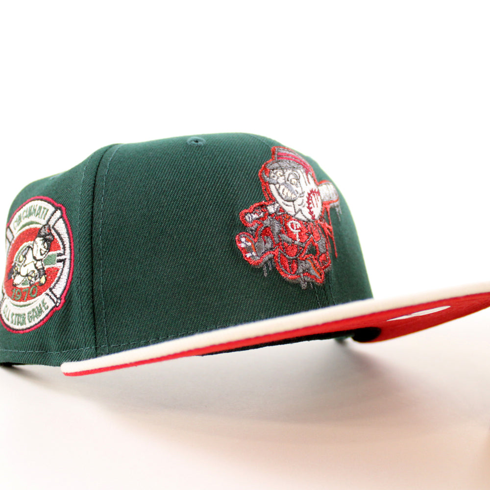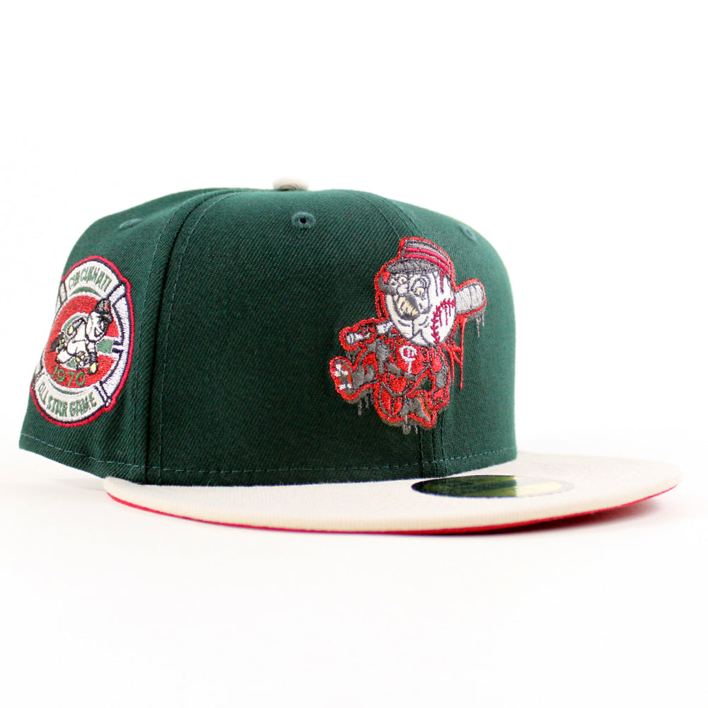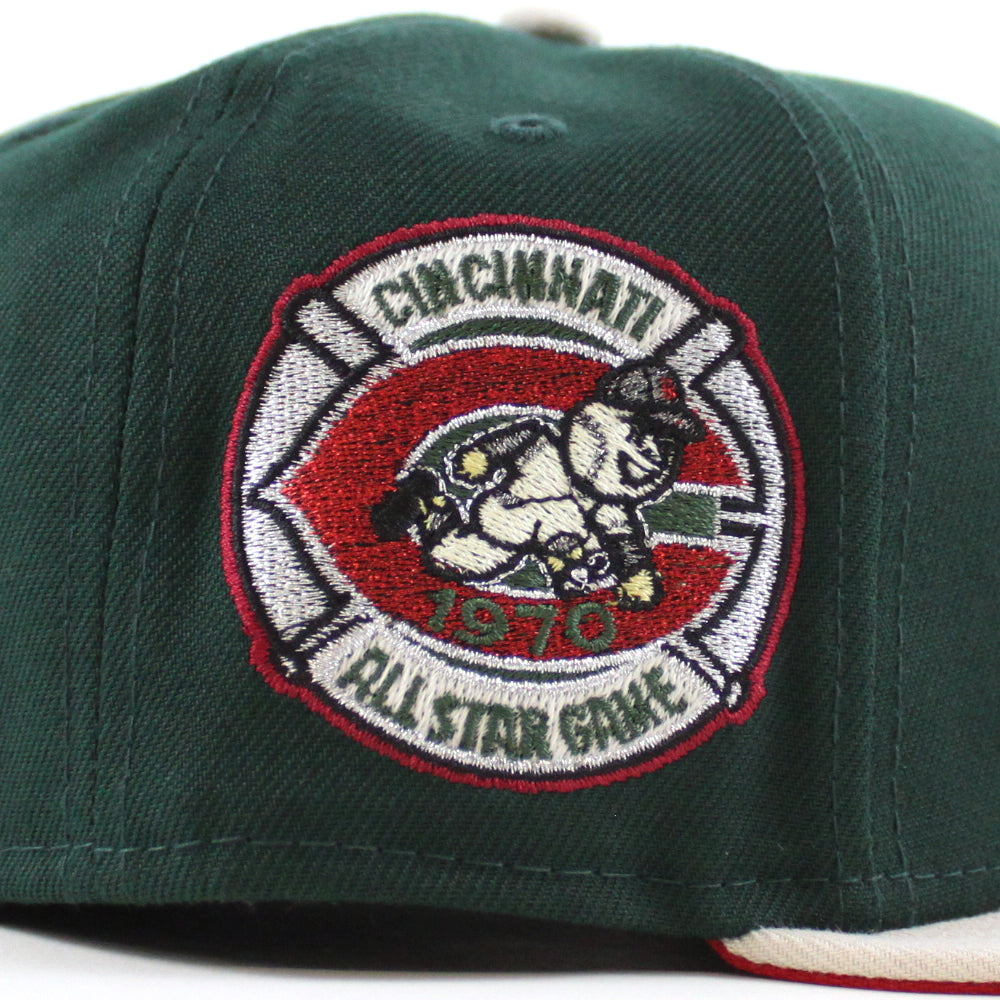 Cincinnati Reds 1970 All Star Game New Era 59Fifty Fitted Hat (Drip logo Dark Green Stone Red Under Brim)