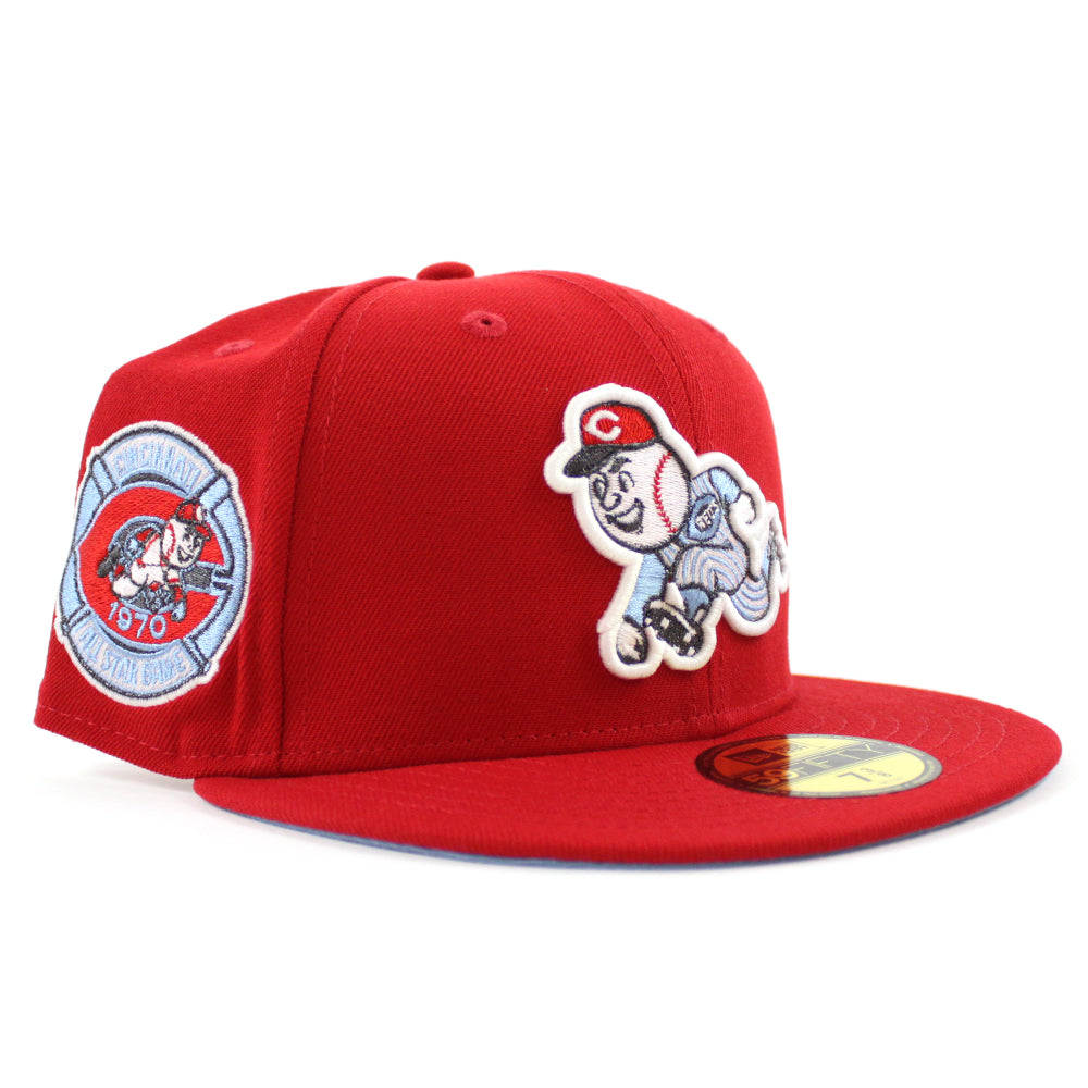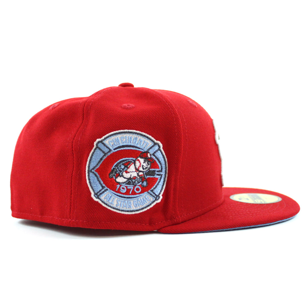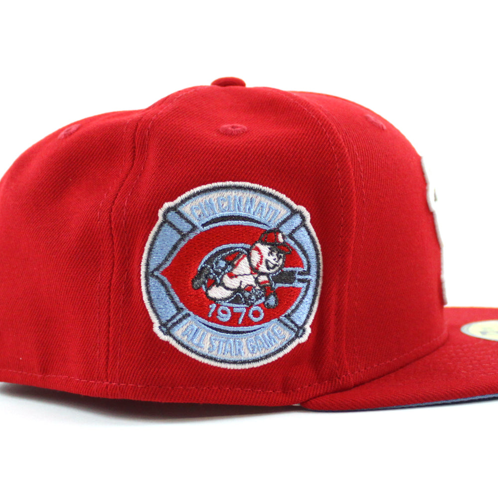 Cincinnati Reds 1970 All-Star Game New Era 59Fifty Fitted Hat in Red and Sky Blue Under Brim.