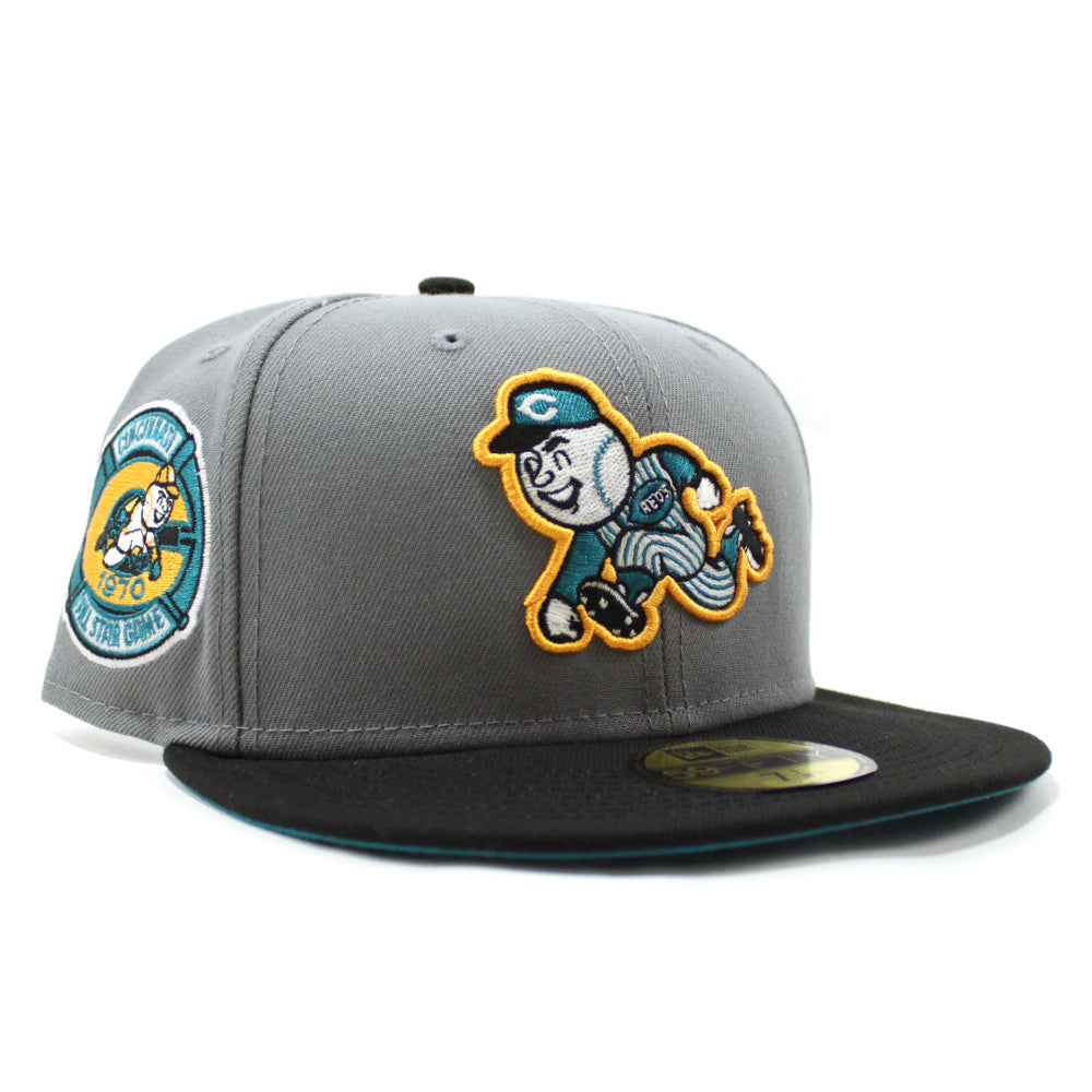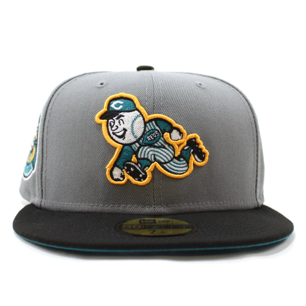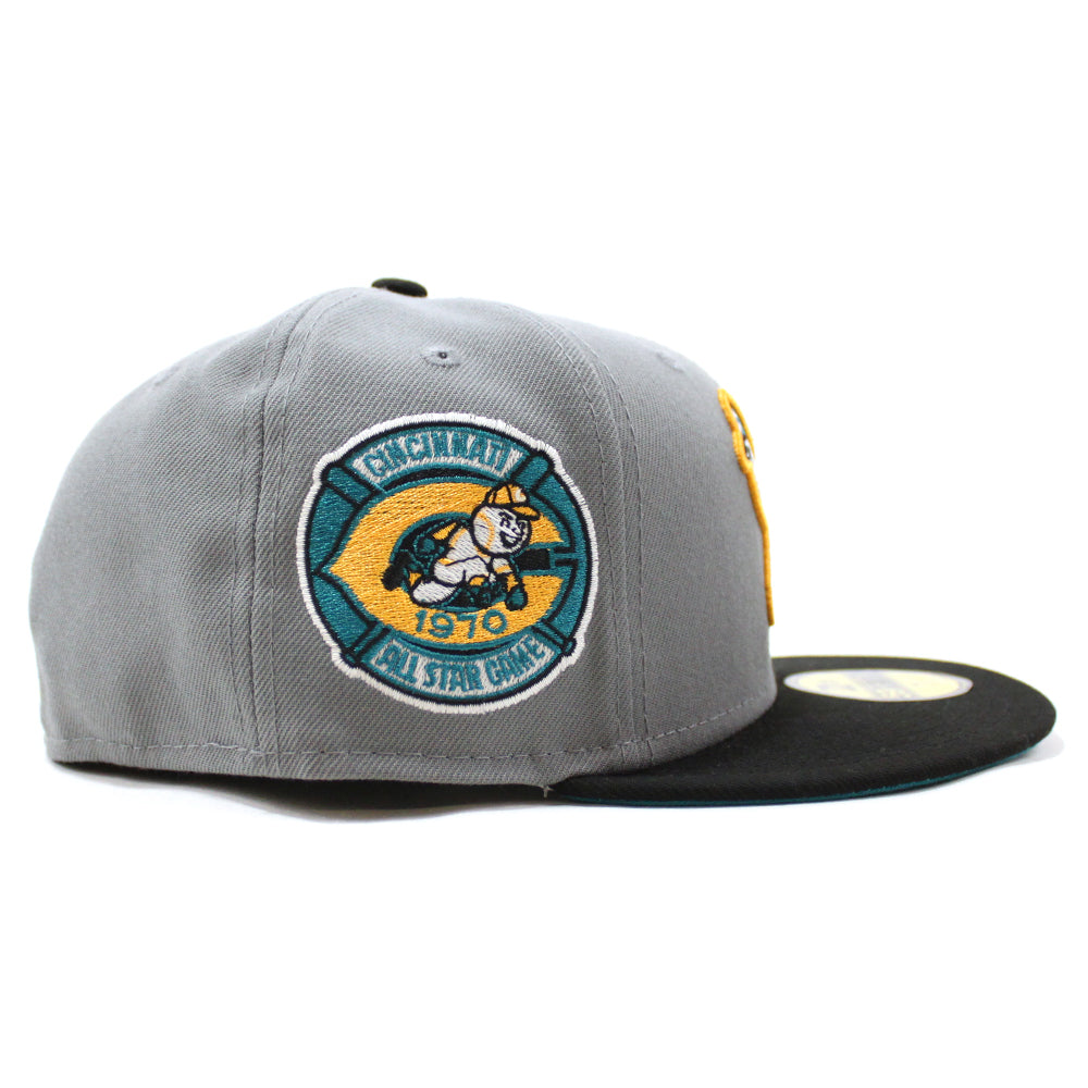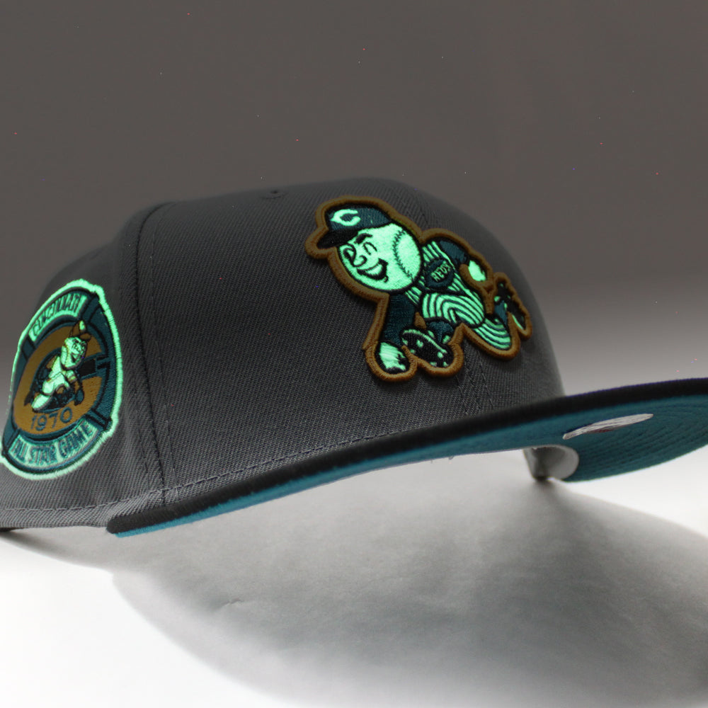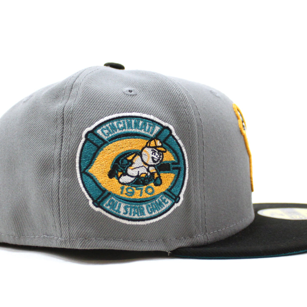 Cincinnati Reds 1970 AllStar Game Retro New Era 59Fifty Fitted Hat (GITD Gray Black Teal Under Brim)