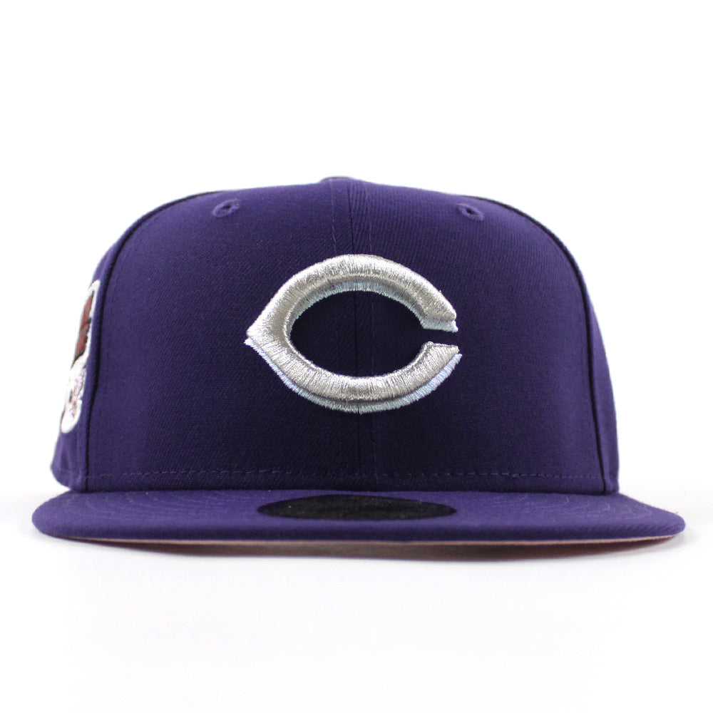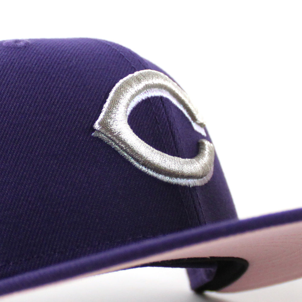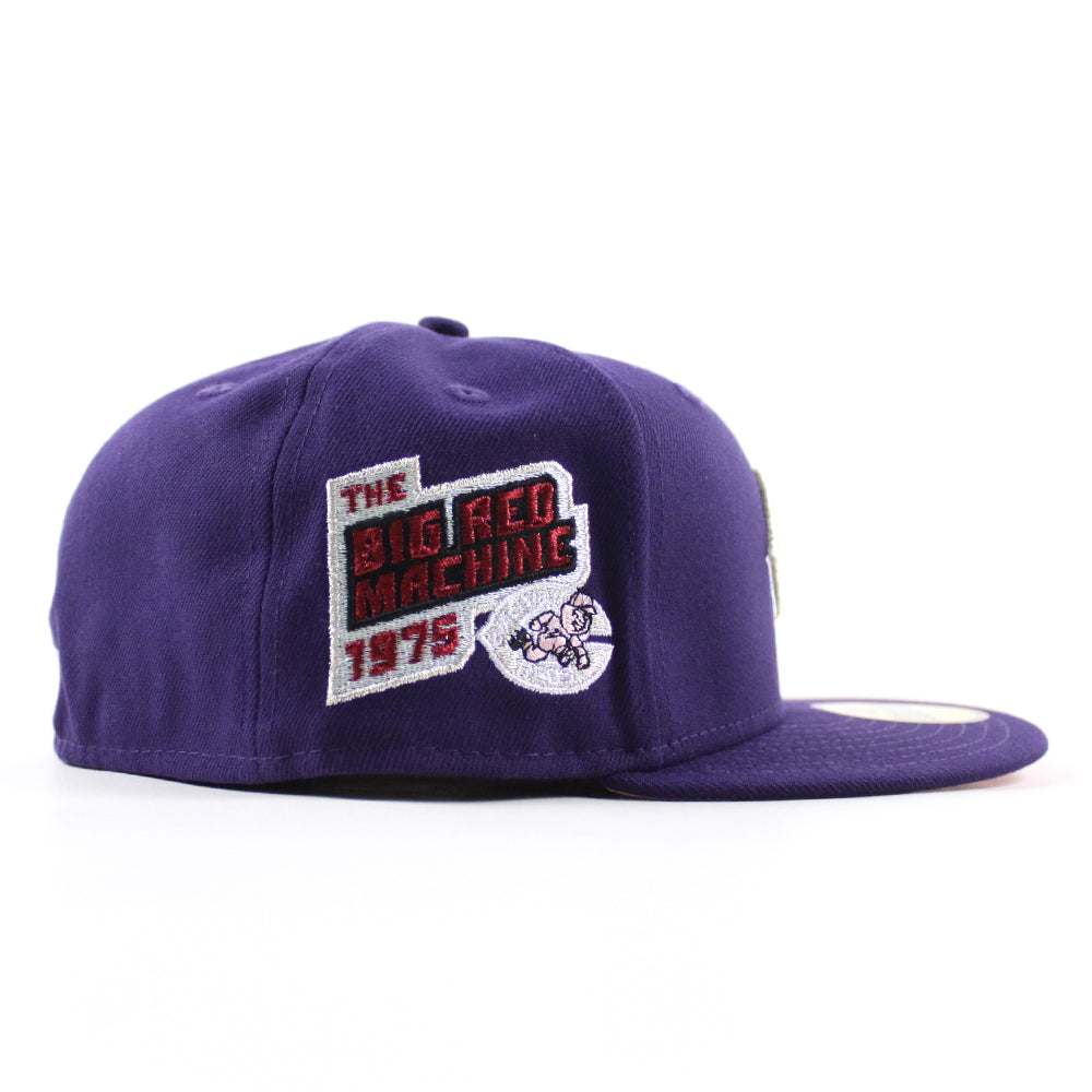 Cincinnati Reds 1975 Big Red Machine New Era 59Fifty Fitted Cap in Purple with a Pink Under Brim.