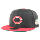 Retro Cincinnati Reds 1990 World Series New Era 59Fifty fitted hat in Black, Red and Green Under Brim.