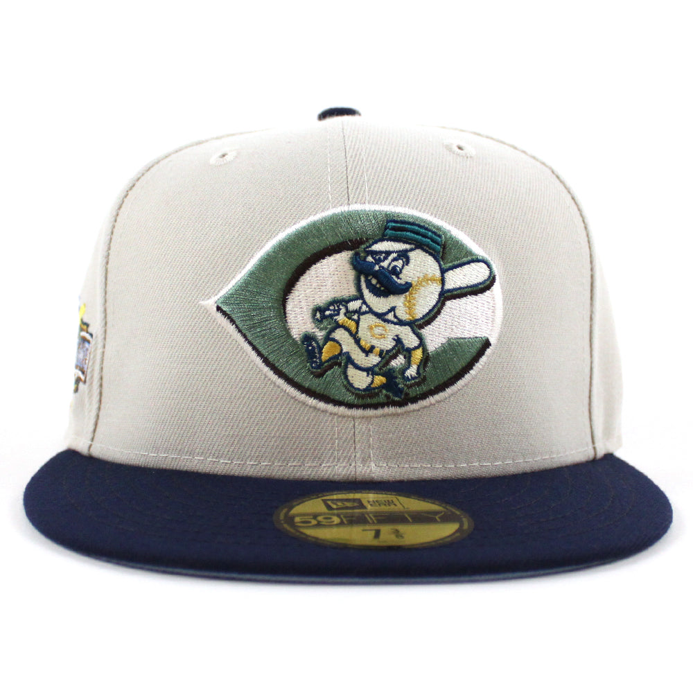 Cincinnati Reds 2015 All Star Game New Era 59Fifty Fitted Cap in Stone, Ocean Navy, and Birdseye  Blue Under Brim.