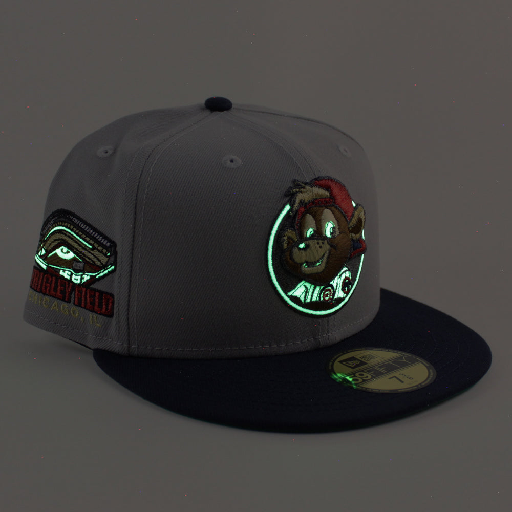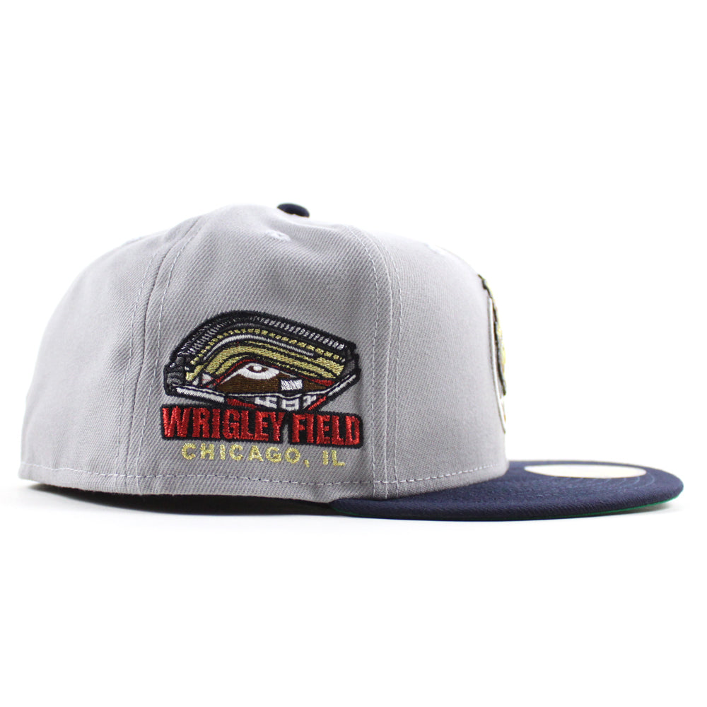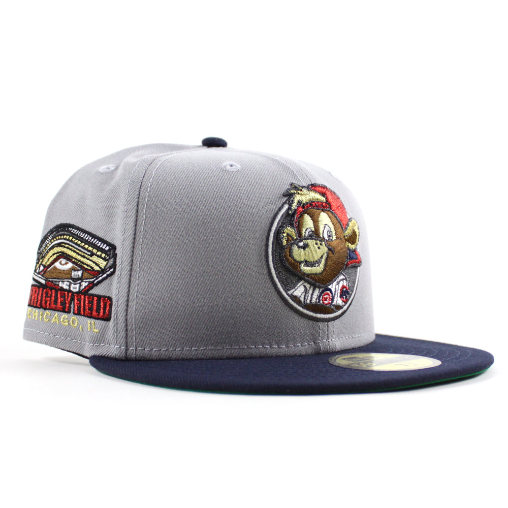 Chicago Cubs (Clark the Cub Mascot) Wringly field 59Fifty New Era Fitted Hat in Gray, Navy and Green Under Brim.