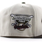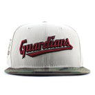 Cleveland Guardians Progressive Field New Era 59Fifty Fitted Hat in Stone, WoodLand Camo and Gray Under Brim.