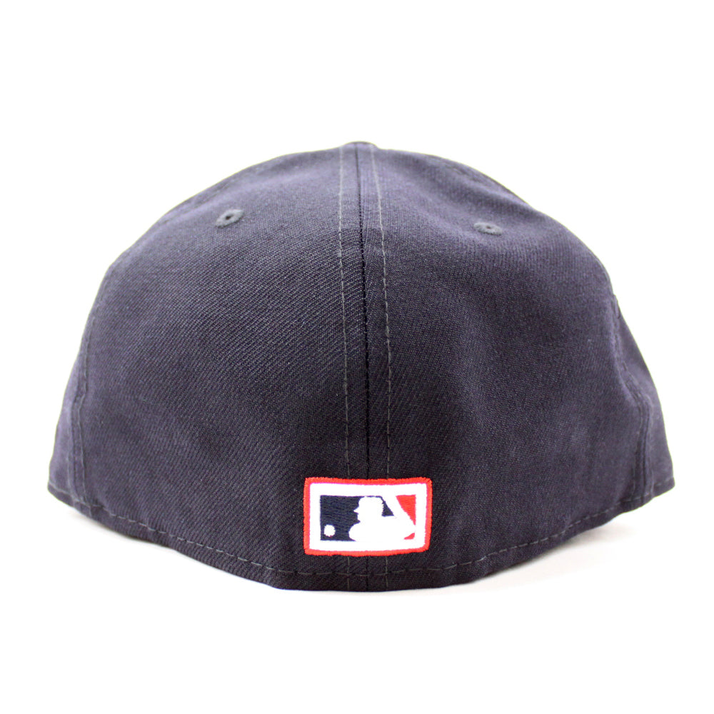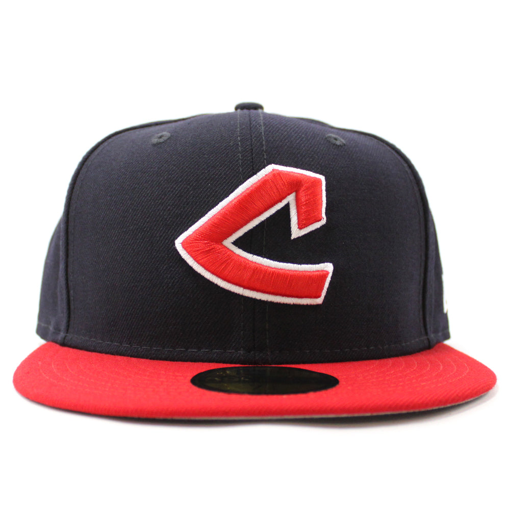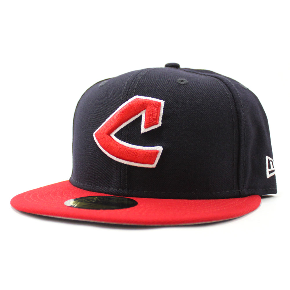 This Indians New Era Fitted Cap is Navy with a red brim, red logo, and Gray Under Brim.