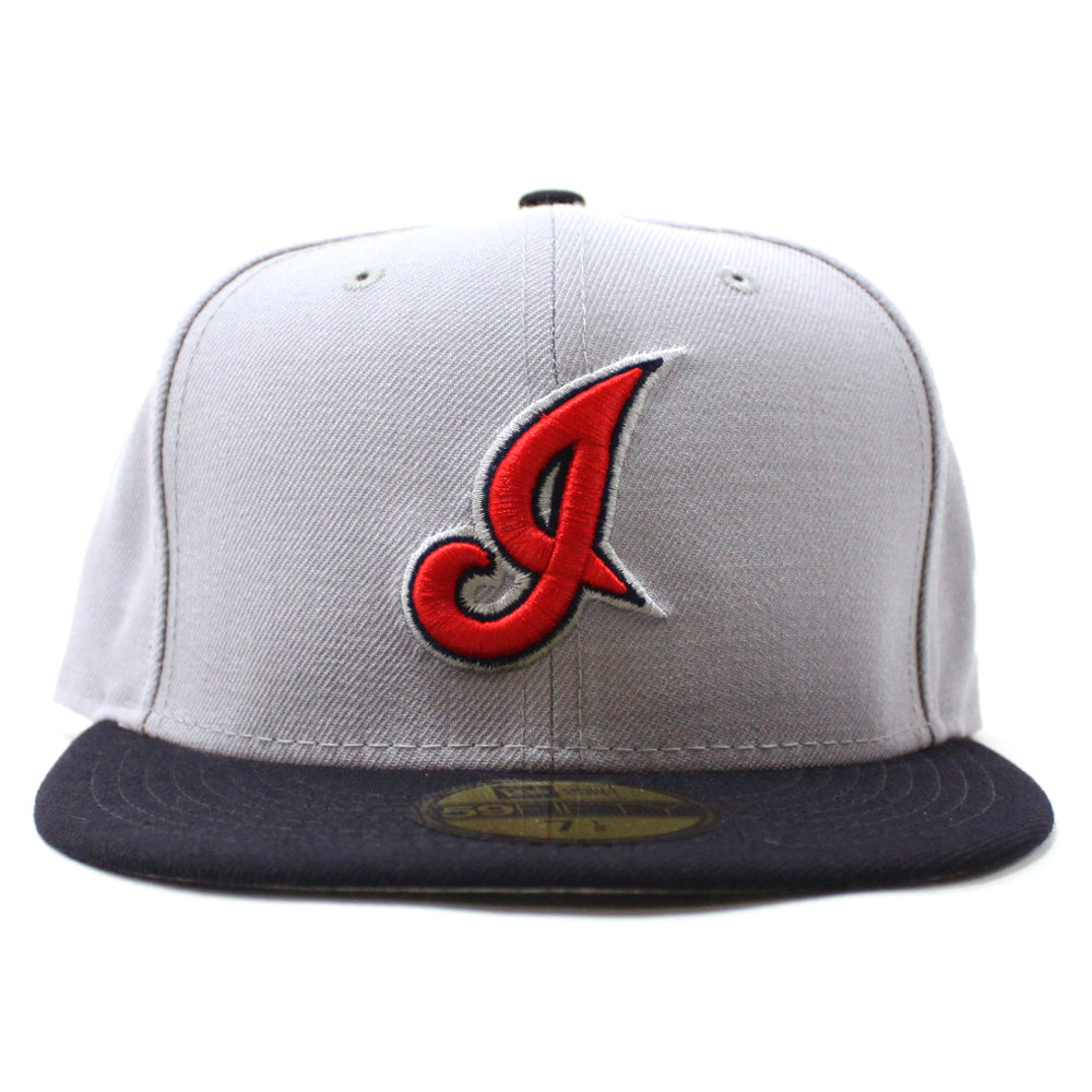 Cleveland Indians 2002 New Era 59Fifty Fitted Hat in Gray, Navy and Gray Under Brim.