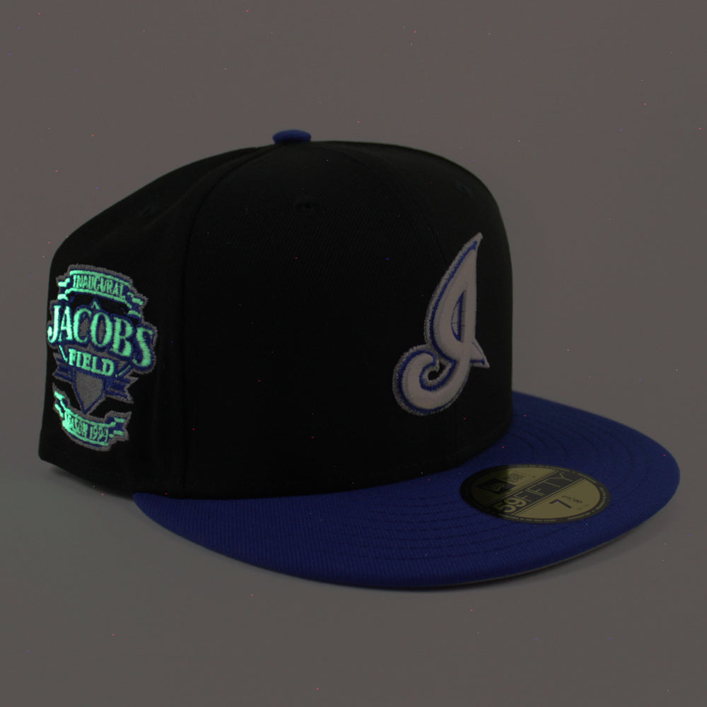 Cleveland Indians Jacobs Field New Era 59Fifty Fitted Hat in Black, Blue and Gray Under Brim.