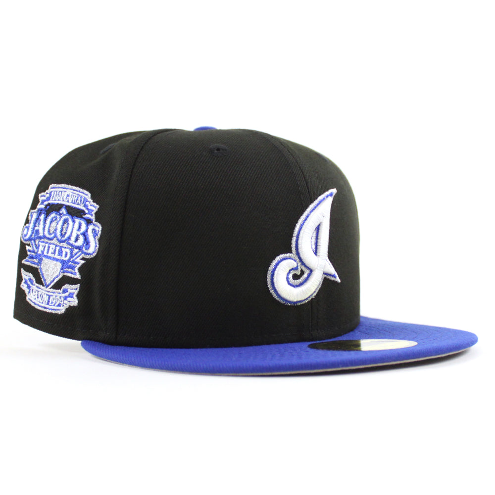 Cleveland Indians Jacobs Field New Era 59Fifty Fitted Hat (Irvington 2.0 Black Blue Gray Under Brim)