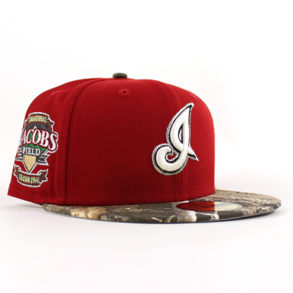 Cleveland Indians Jacobs Field New Era 59Fifty Fitted Hat in Scarlet Red, RealTree and Gray Under Brim