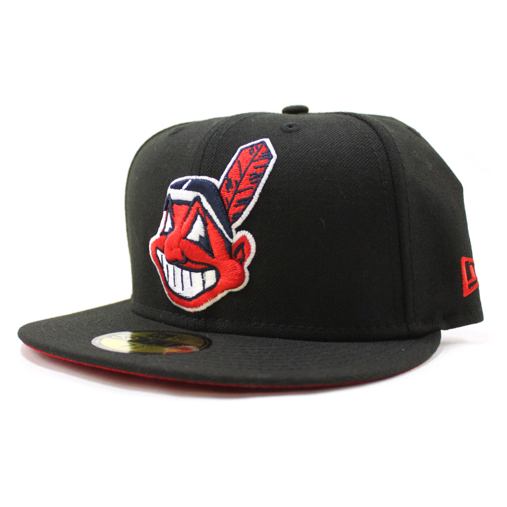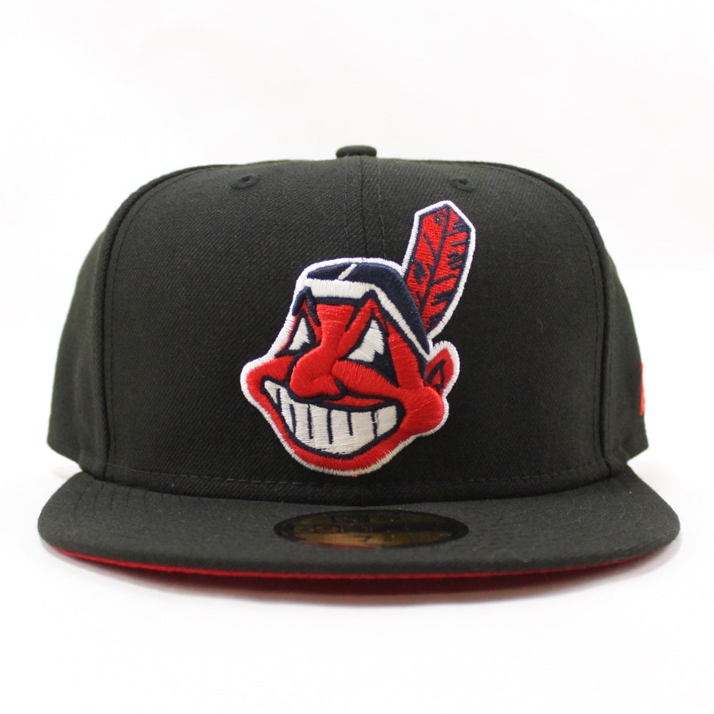 Cleveland Indians New Era 59Fifty Fitted Hat in Black & Red Under Brim.