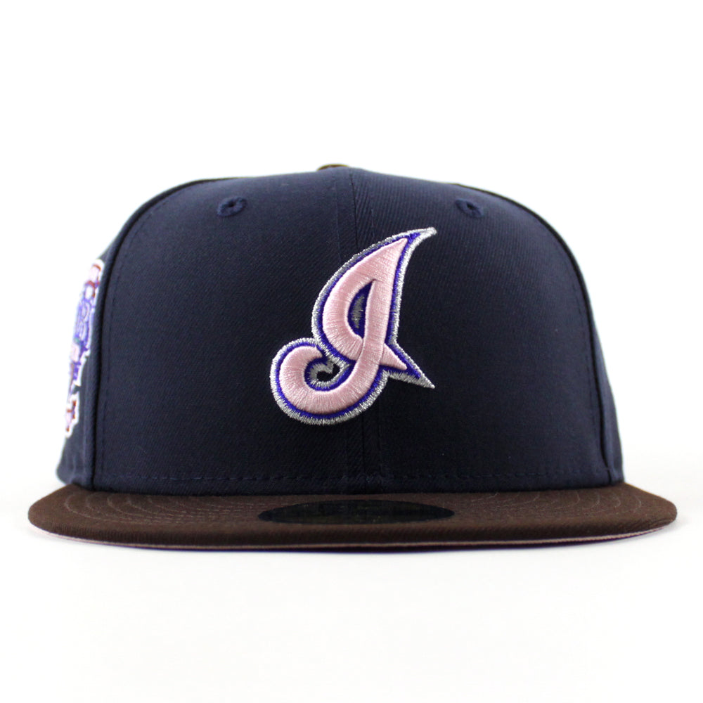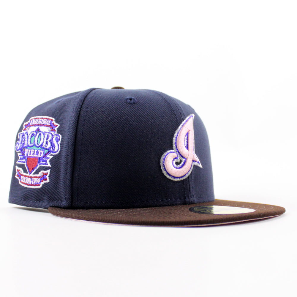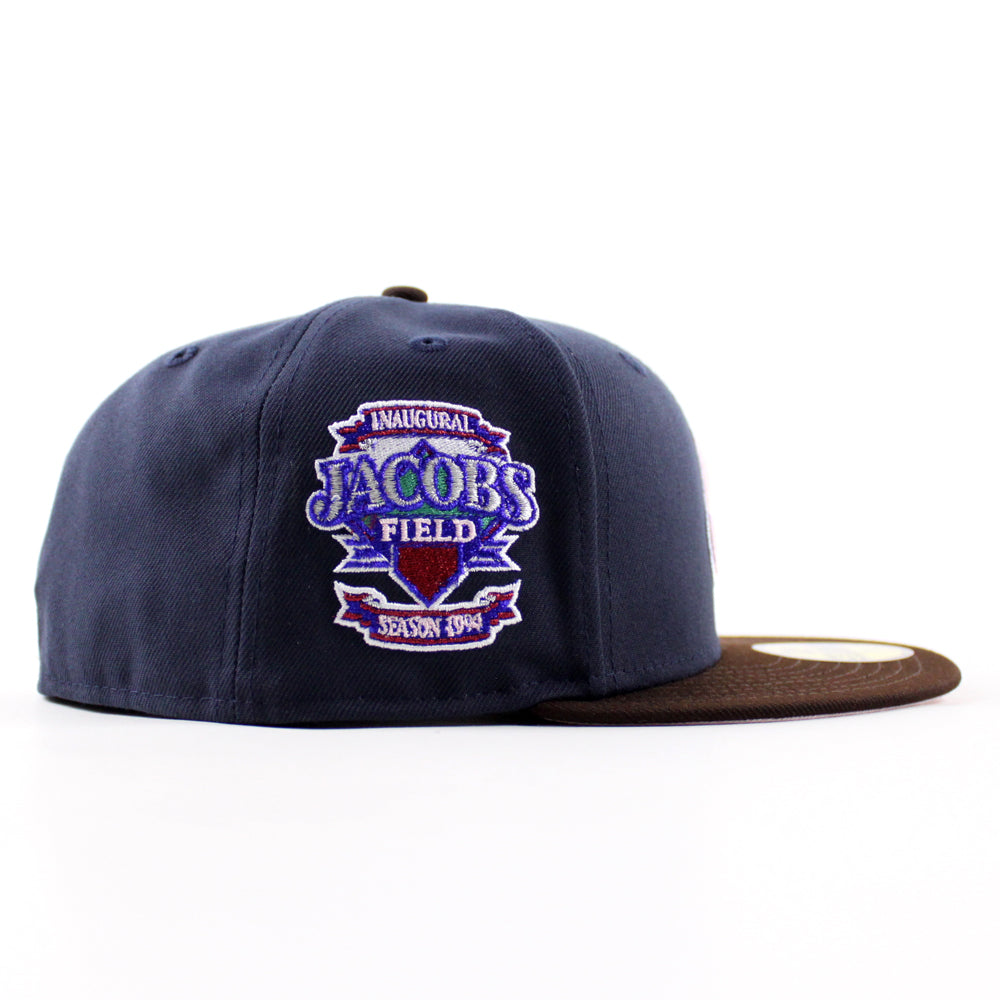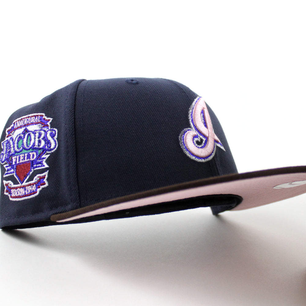Cleveland Indians Season 1994 New Era 59Fifty Fitted Hat in Navy with Burnt Wood and Pink Under Brimย