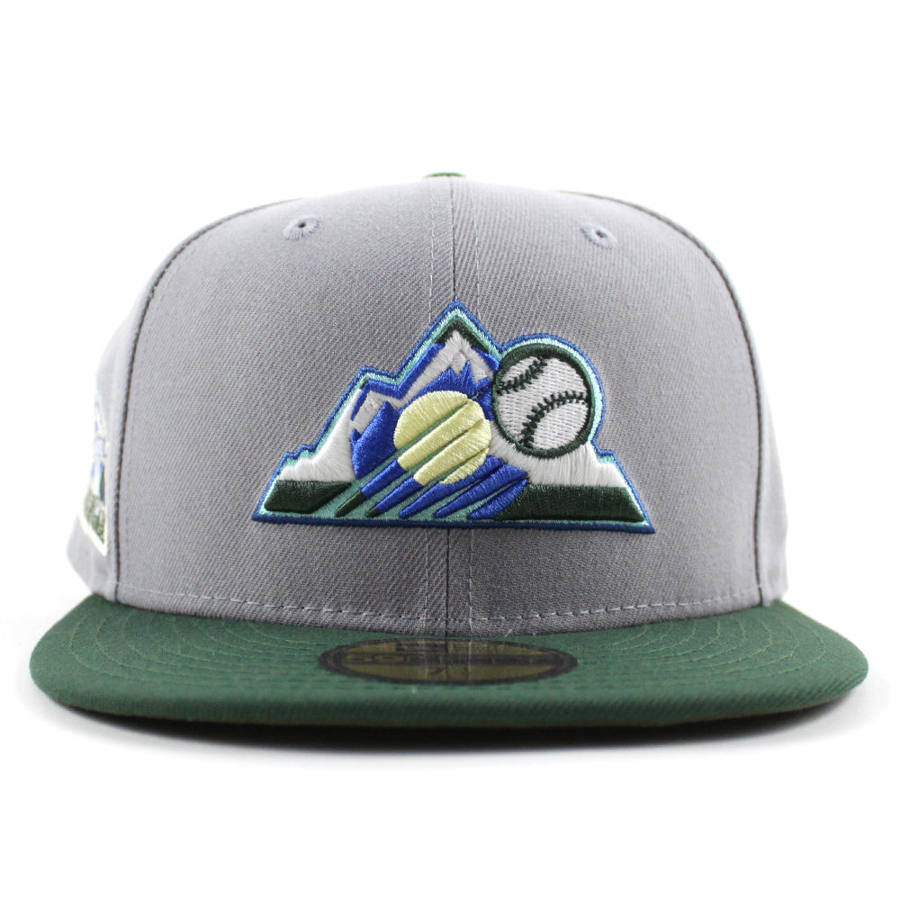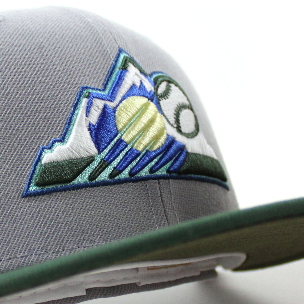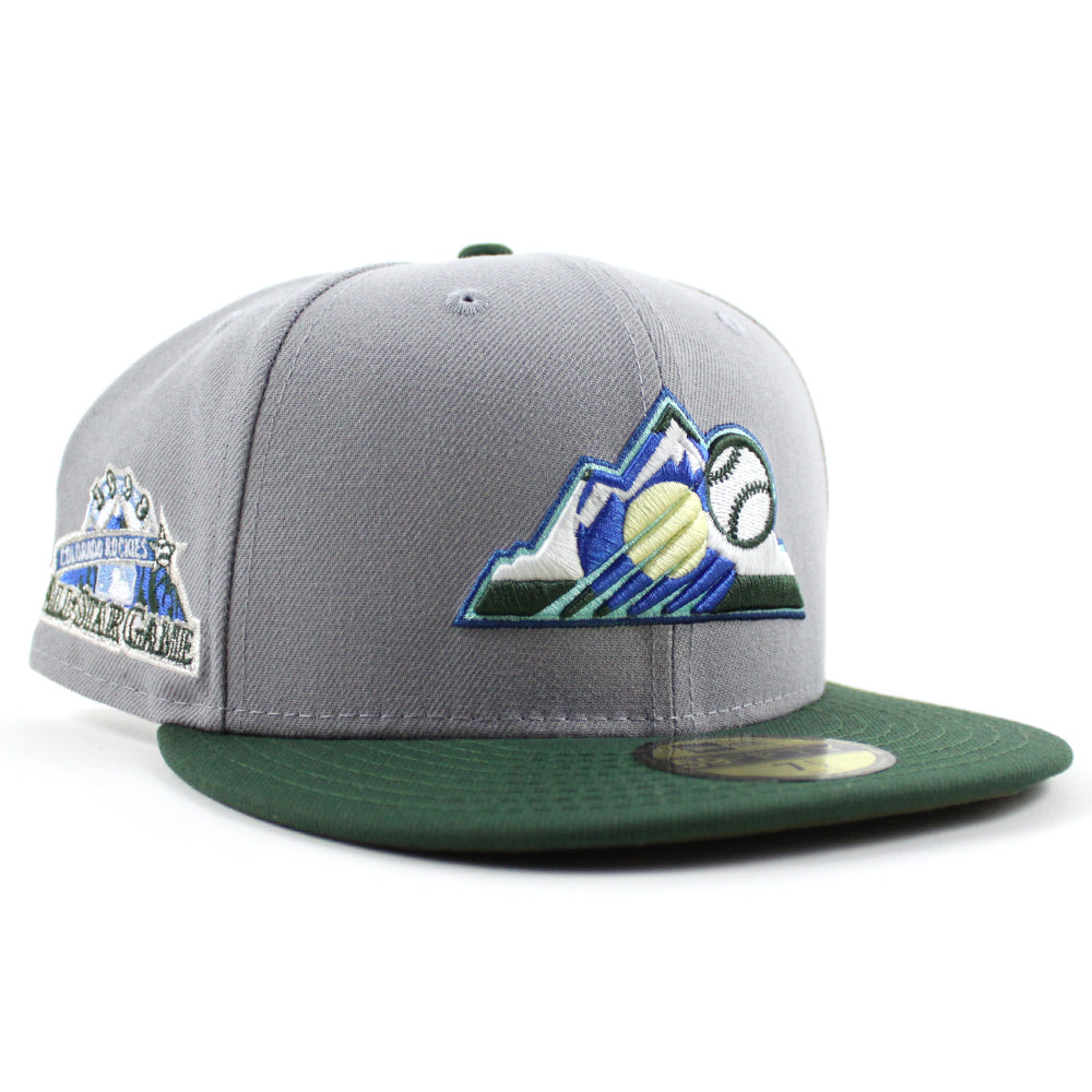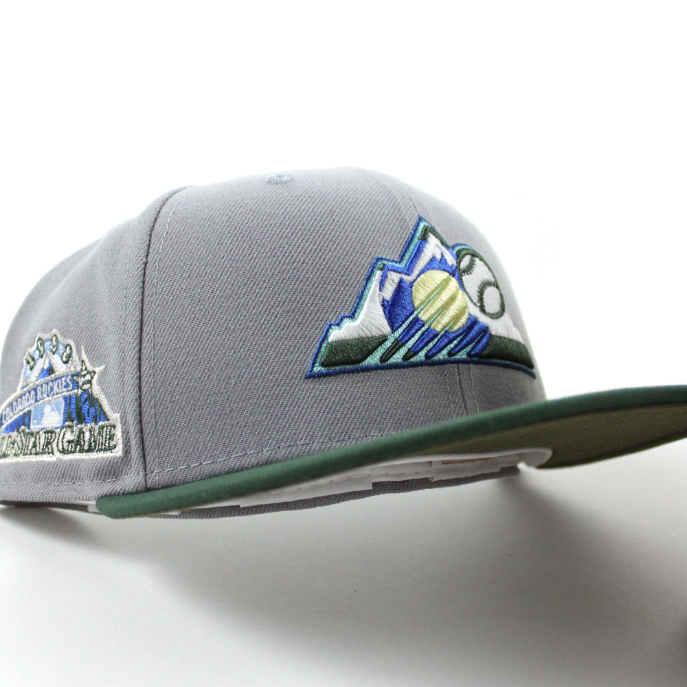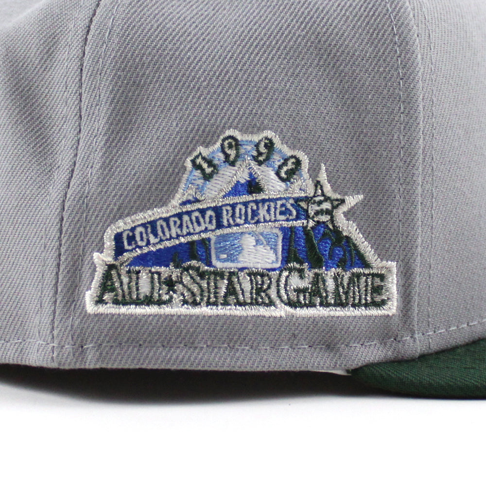 Colorado Rockies 1998 All Star Game New Era 59Fifty Fitted Hat in Gray, Dark Green and Olive Under Brim.