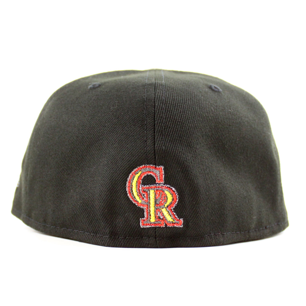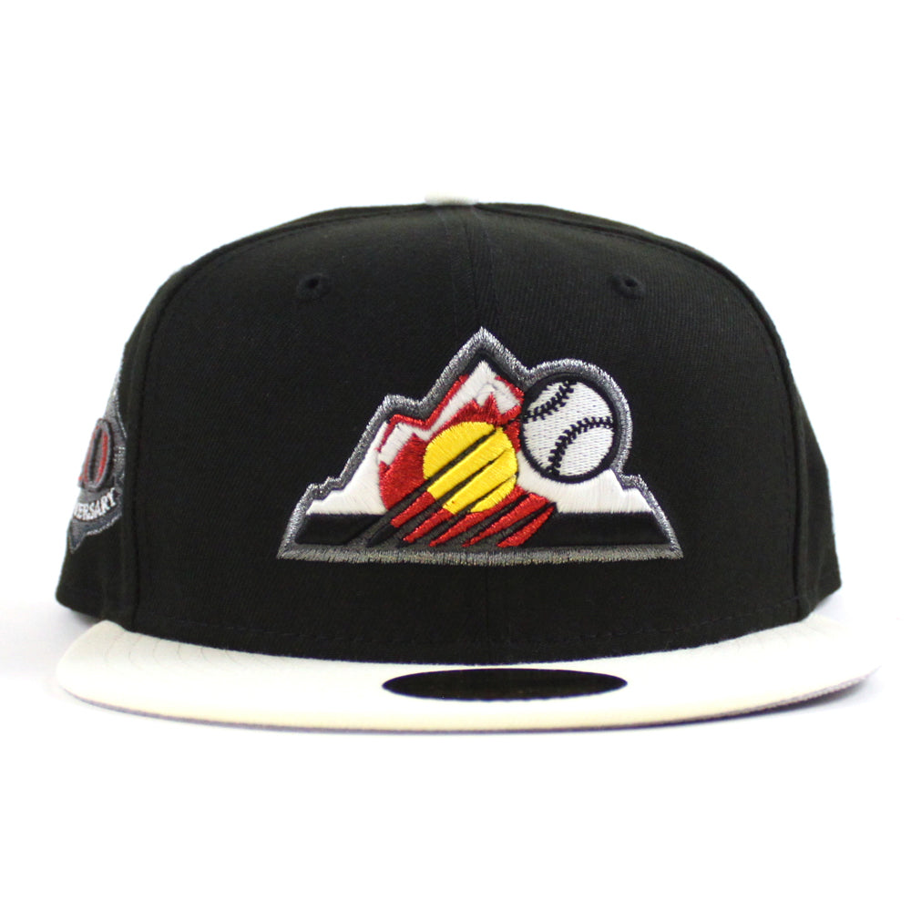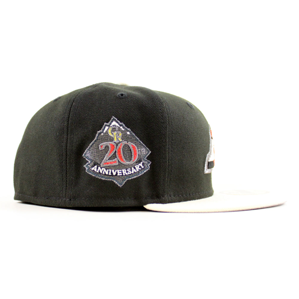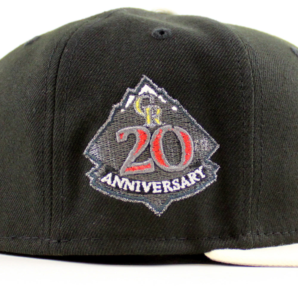 Colorado Rockies 20th Anniversary New Era 59Fifty Fitted Cap in Black, Chrome White and Gray Under Brim.