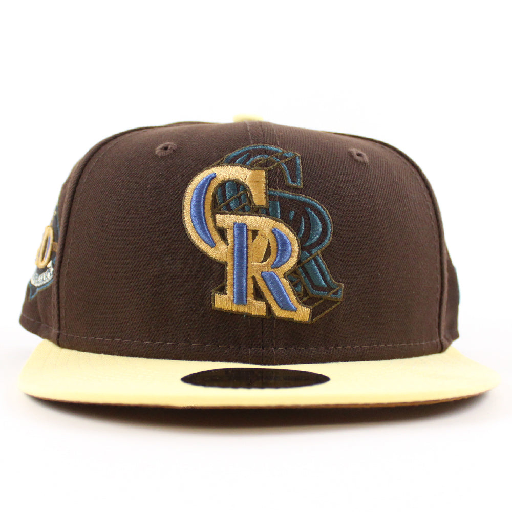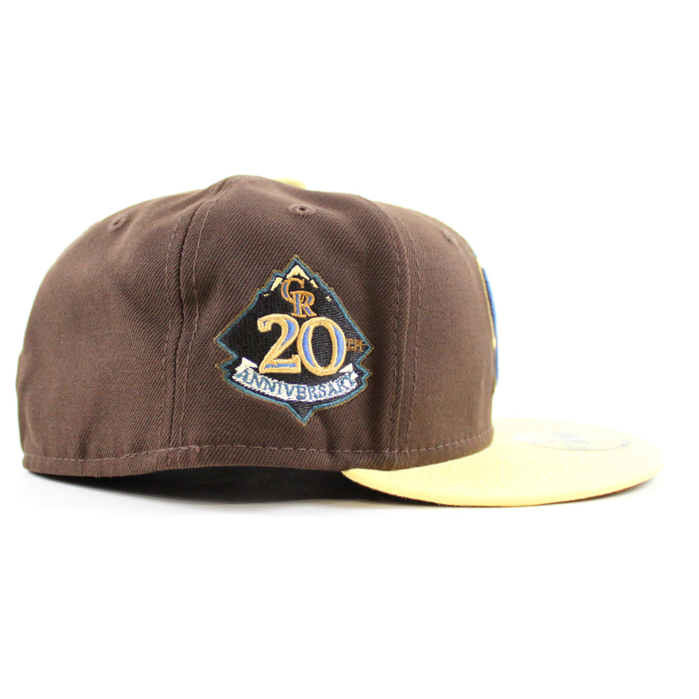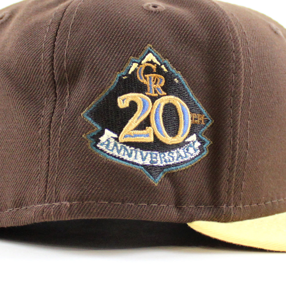 Colorado Rockies 20th Anniversary New Era 59Fifty Fitted Hat (BURNT WOOD SOFT YELLOW TOASTED Under Brim)