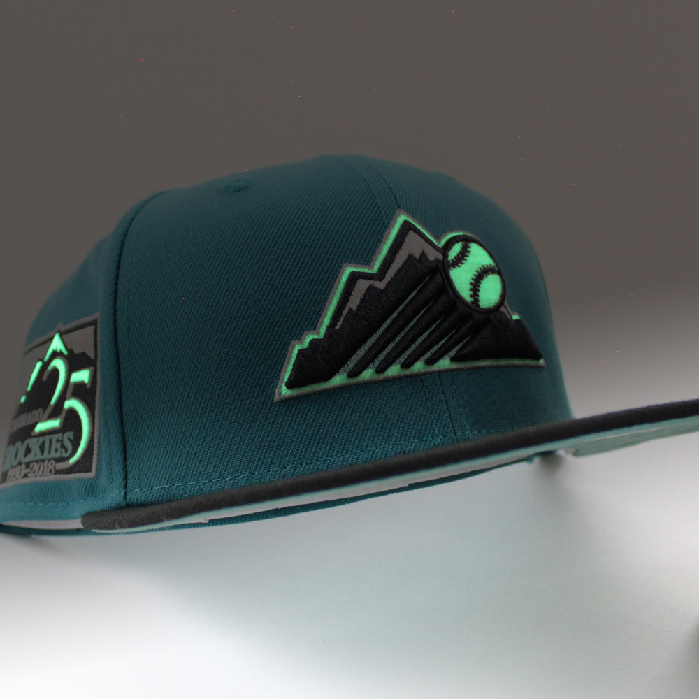 Colorado Rockies 25th Anniversary New Era 59Fifty Fitted Hat (GITD Aqua Black Mint Under Brim)