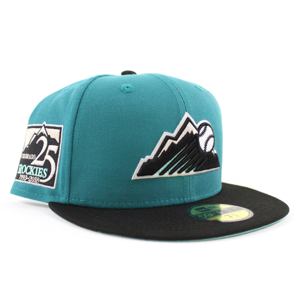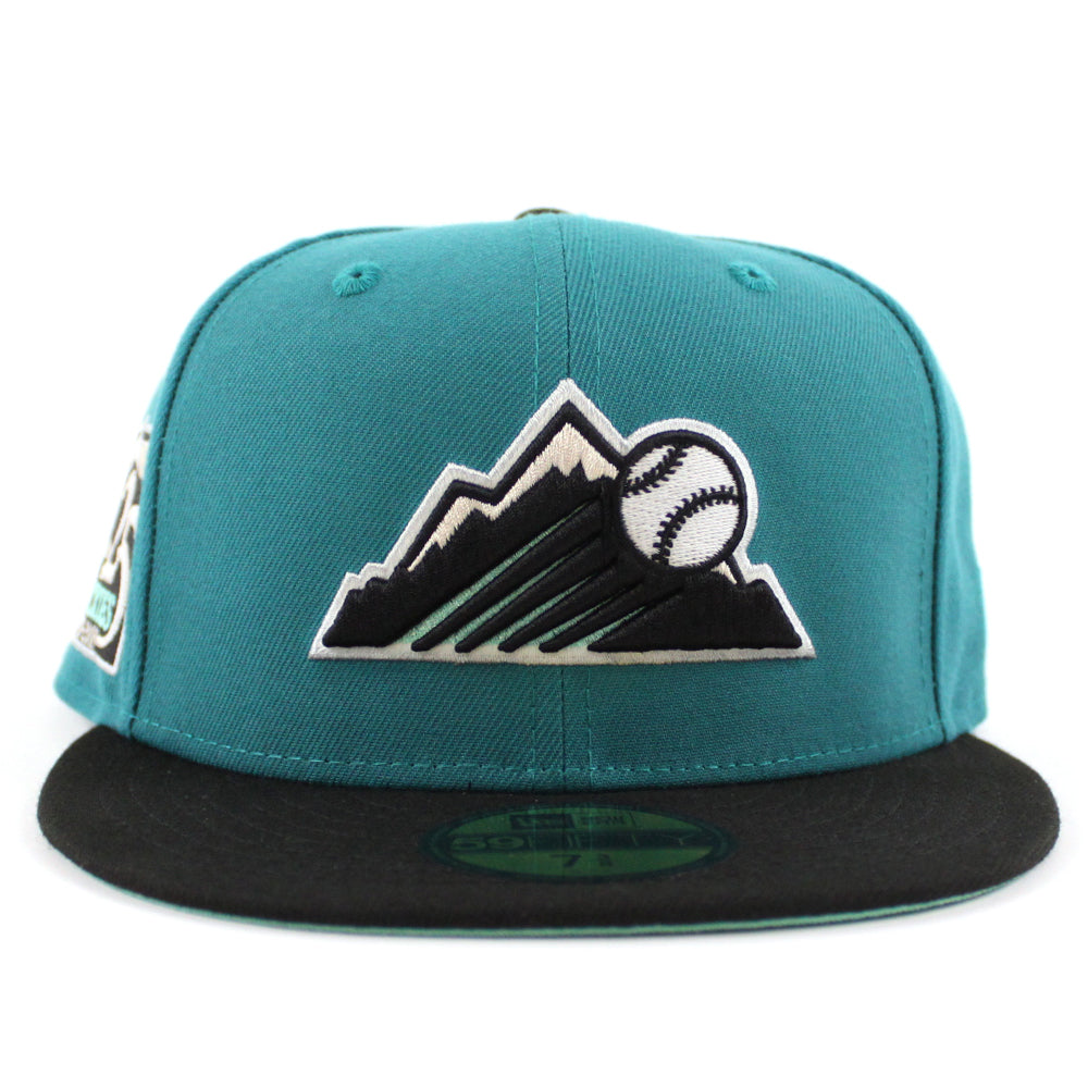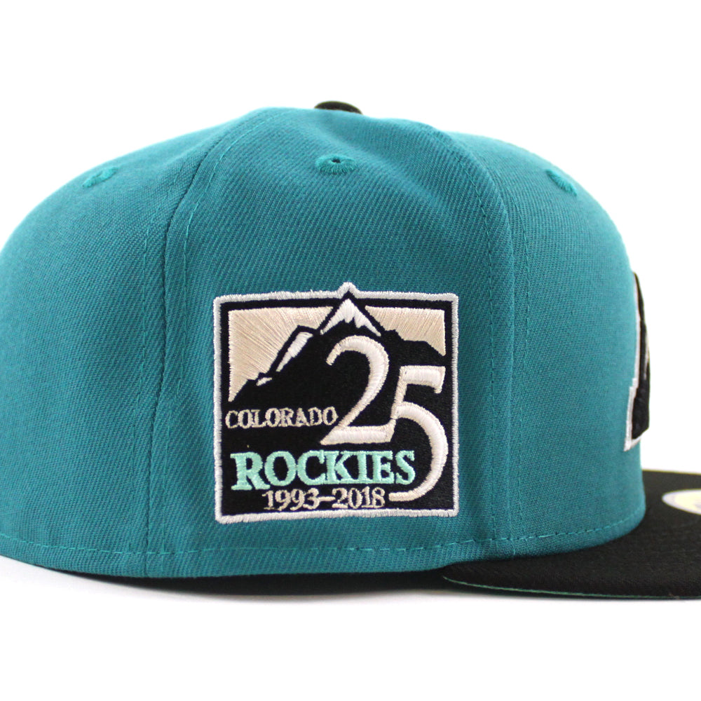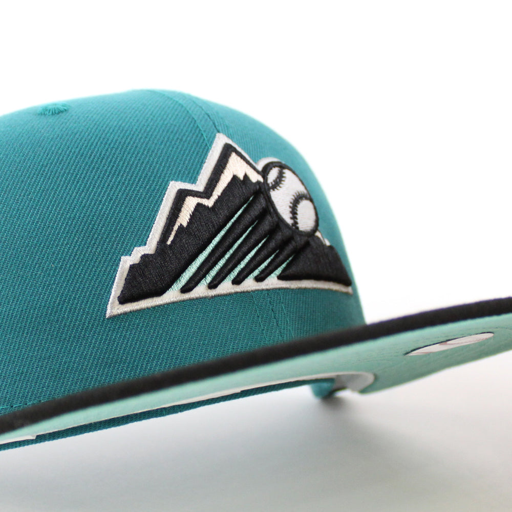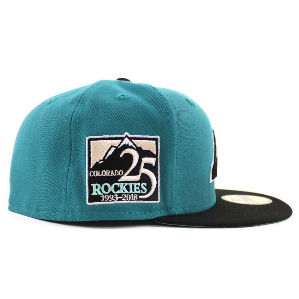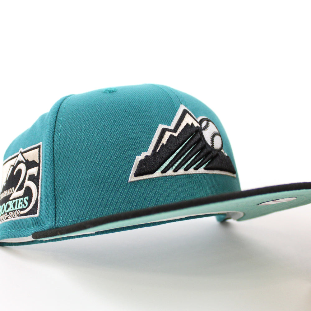 Colorado Rockies 25th Anniversary New Era 59Fifty Fitted Hat in Aqua, Black Visor with Mint Under Brim