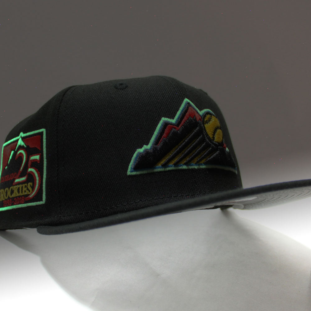 Colorado Rockies 25th Anniversary New Era 59Fifty Fitted Hat (Glow in the Dark BLACK REFLECTIVE 3M Gray Under Brim)