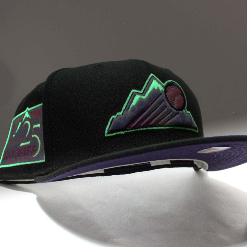 Colorado Rockies 25th Anniversary New Era 59Fifty Fitted Hat (Glow in the Dark Black Lavender Hot Pink Purple Under Brim)