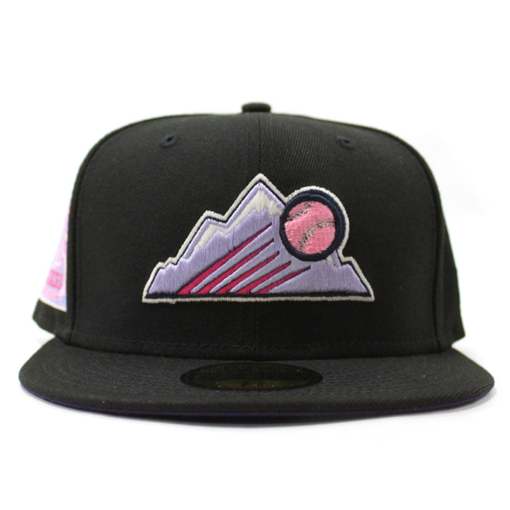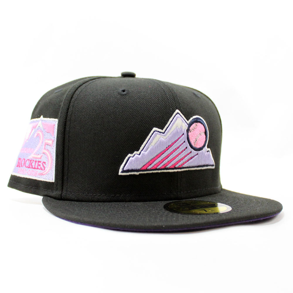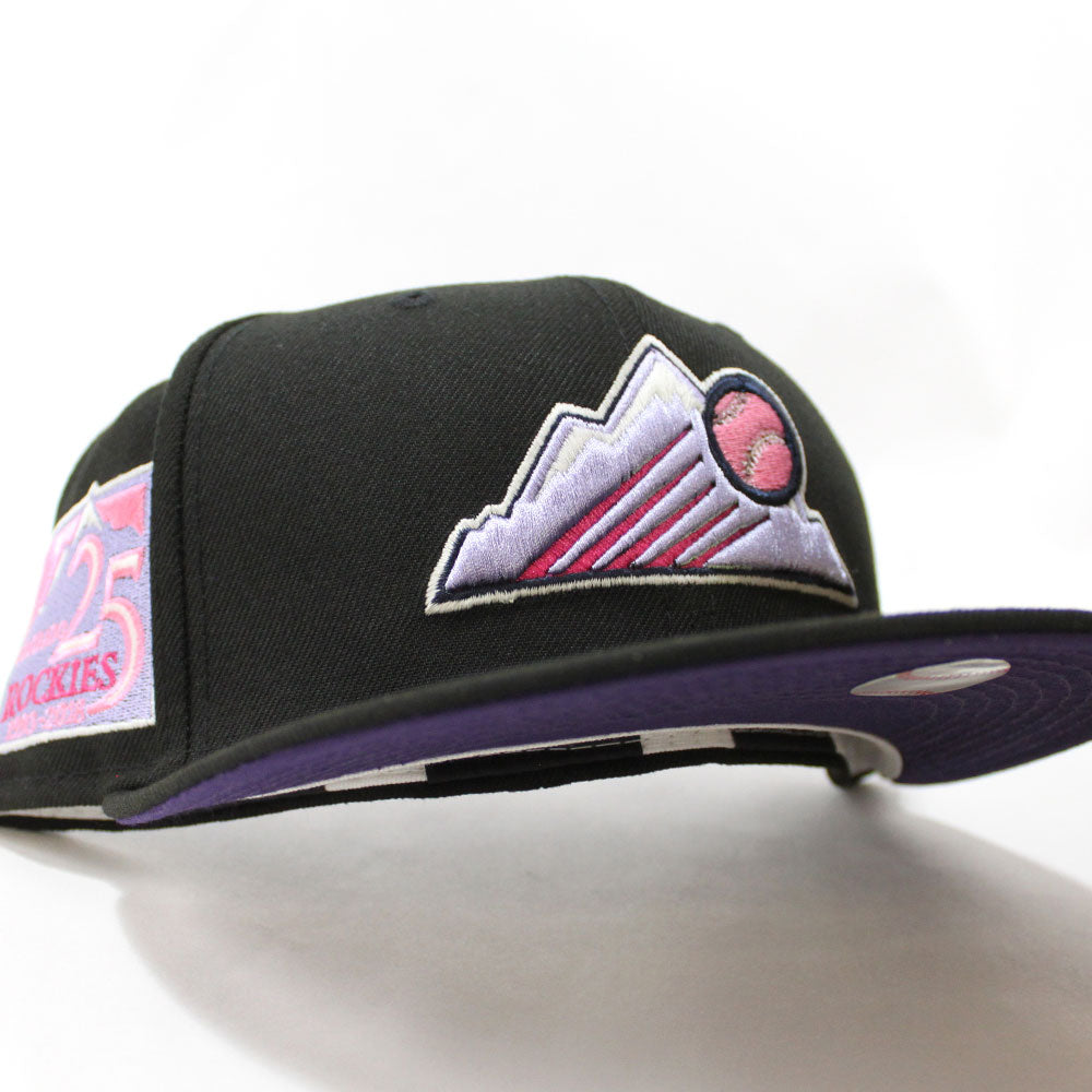 Colorado Rockies 25th Anniversary New Era 59Fifty Fitted Hat in Black, Lavender, Hot Pink & Purple Under Brim.