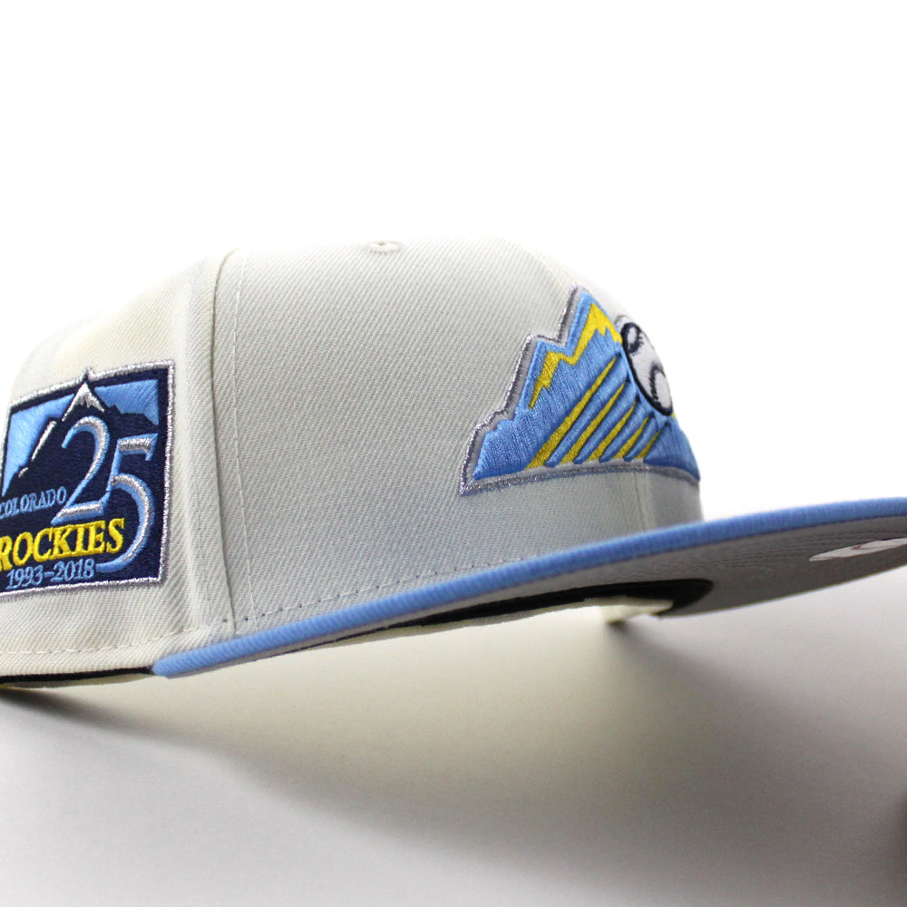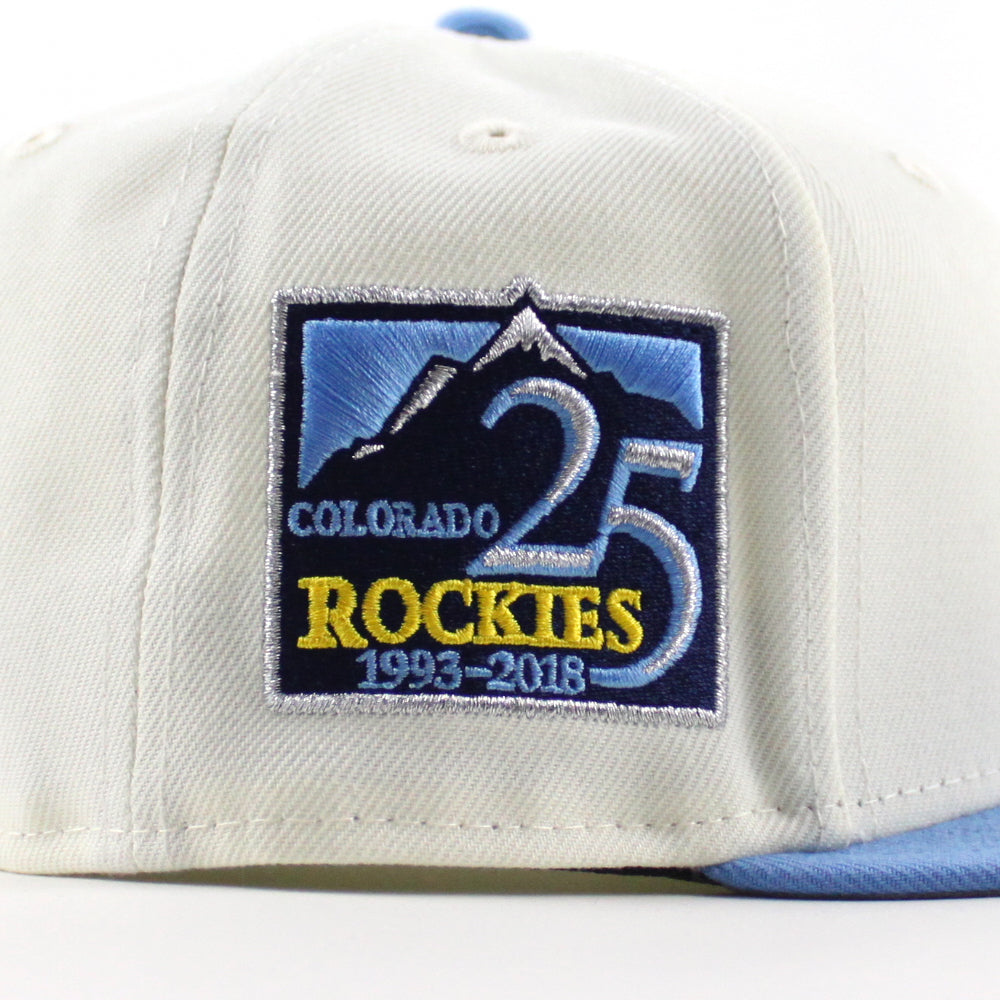 Colorado Rockies 25th Anniversary New Era 59Fifty Fitted Hat (Chrome White Light Blue Gray Under Brim)
